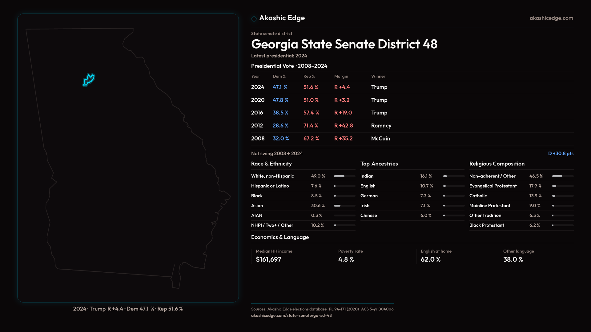 Who lives in Georgia State Senate District 48? 190,123 residents as of the 2020 Census.