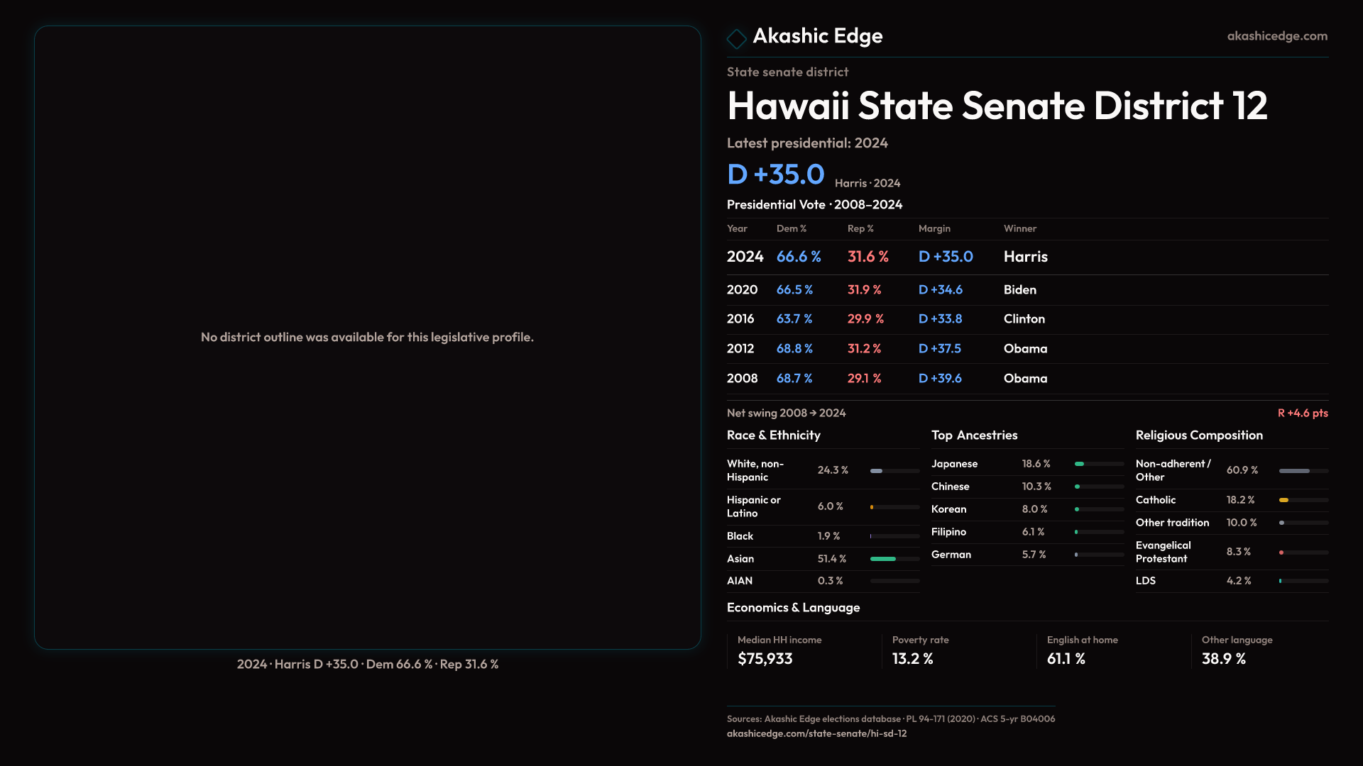 Who lives in Hawaii State Senate District 12? 56,390 residents as of the 2020 Census.