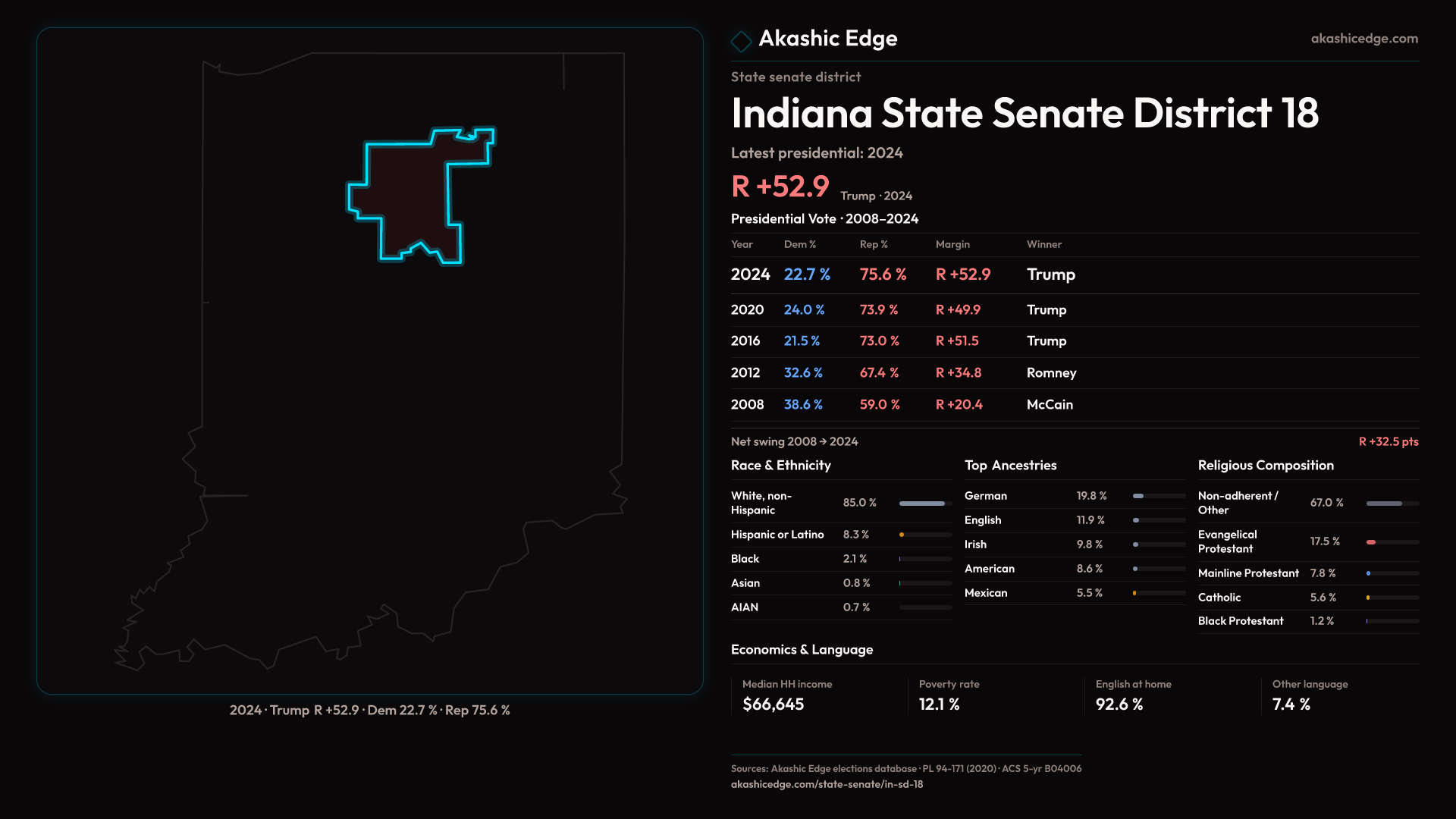 Who lives in Indiana State Senate District 18? 133,344 residents as of the 2020 Census.