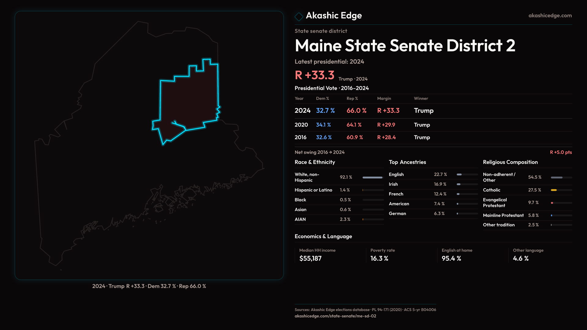 Who lives in Maine State Senate District 2? 39,828 residents as of the 2020 Census.