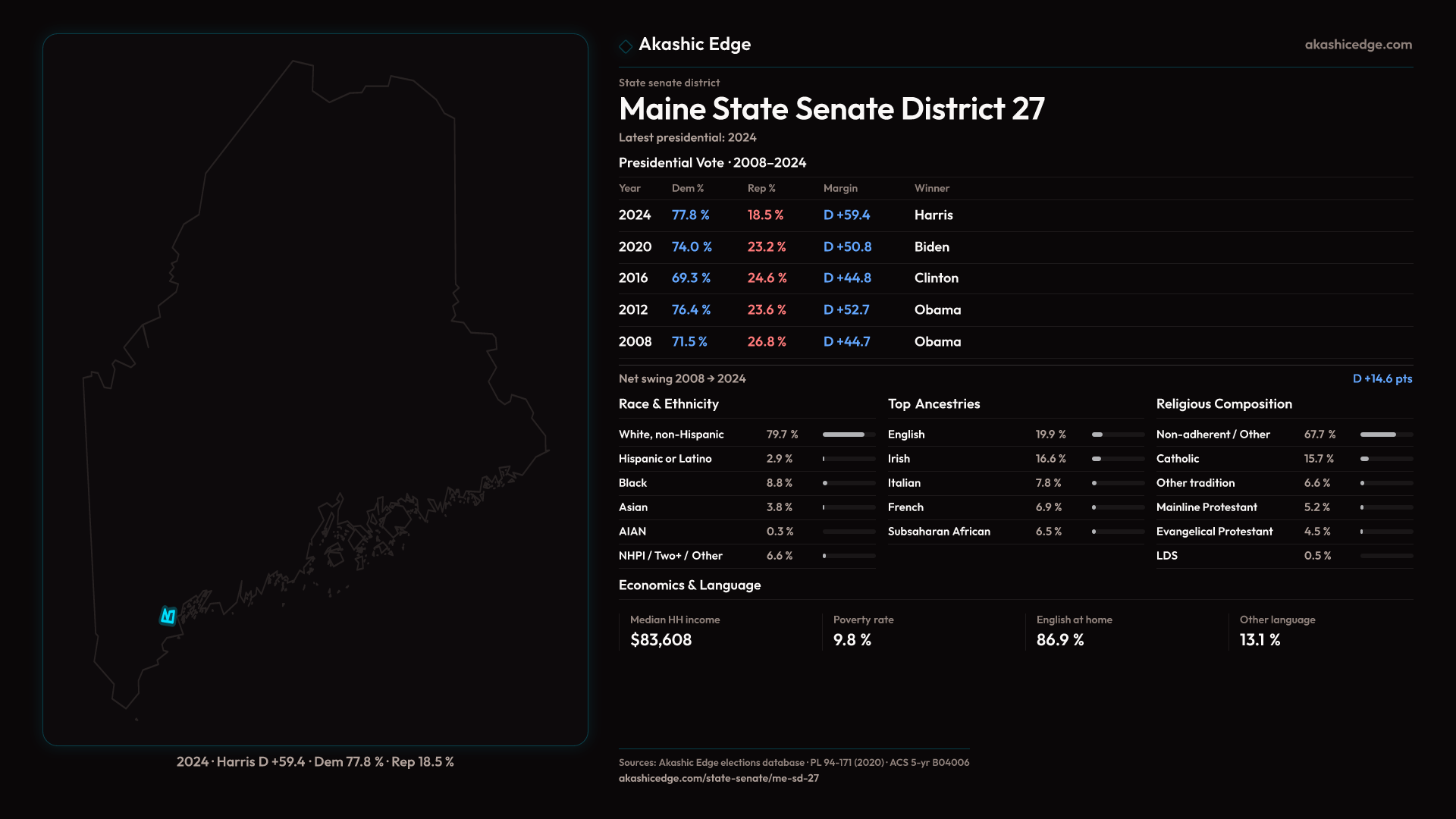 Who lives in Maine State Senate District 27? 38,865 residents as of the 2020 Census.