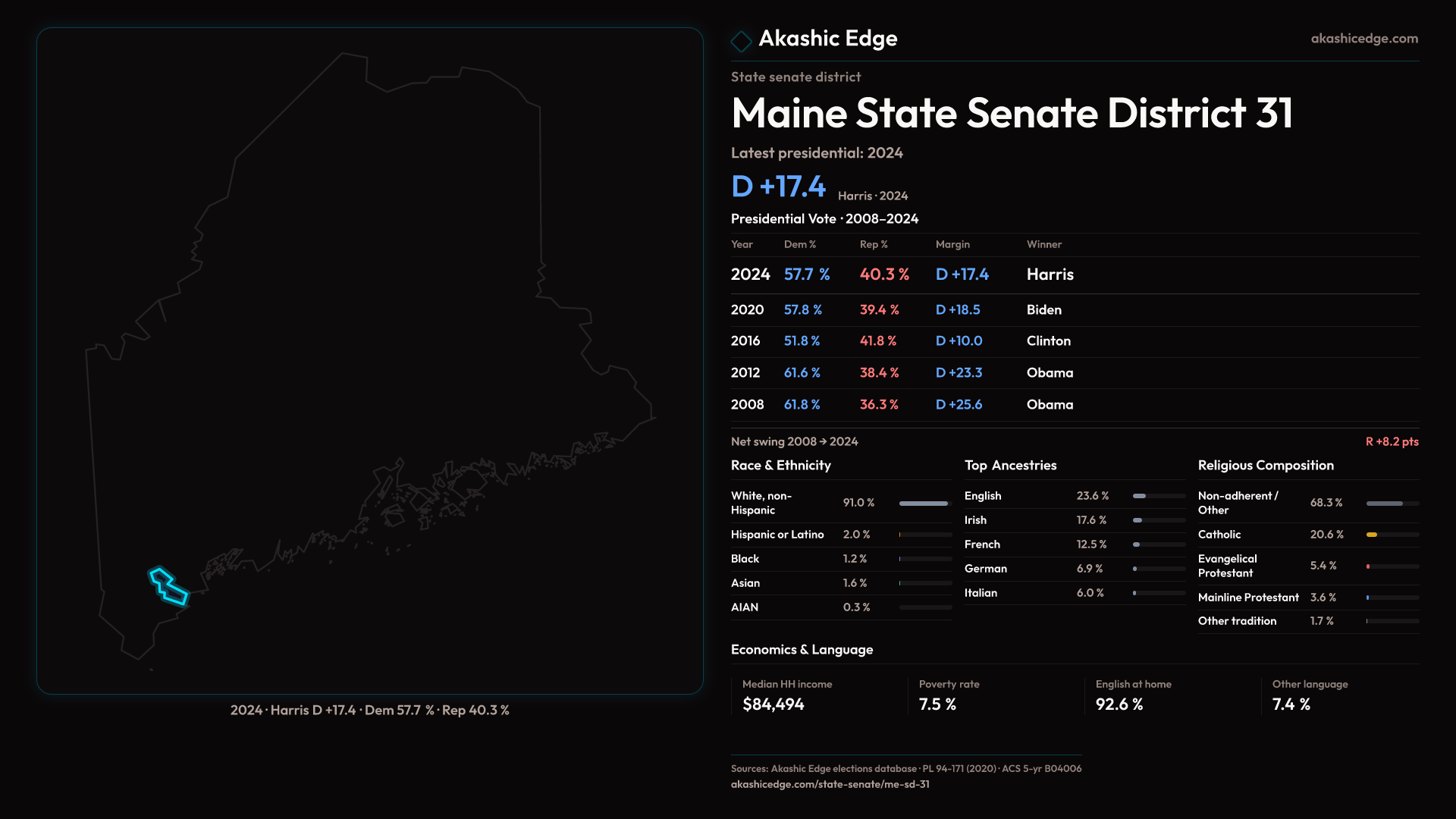Read this geography's profile in three layers: local, state (where available), and national baseline.