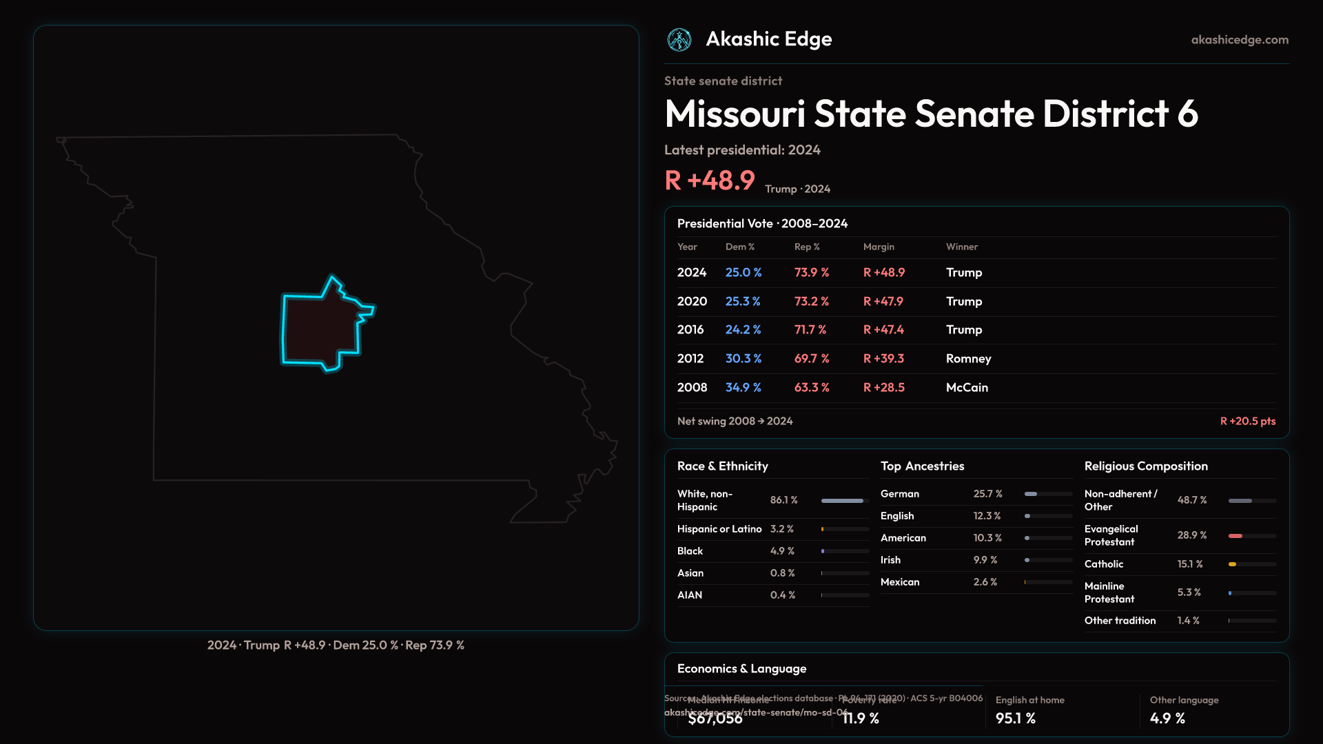 Who lives in Missouri State Senate District 6? 181,225 residents as of the 2020 Census.