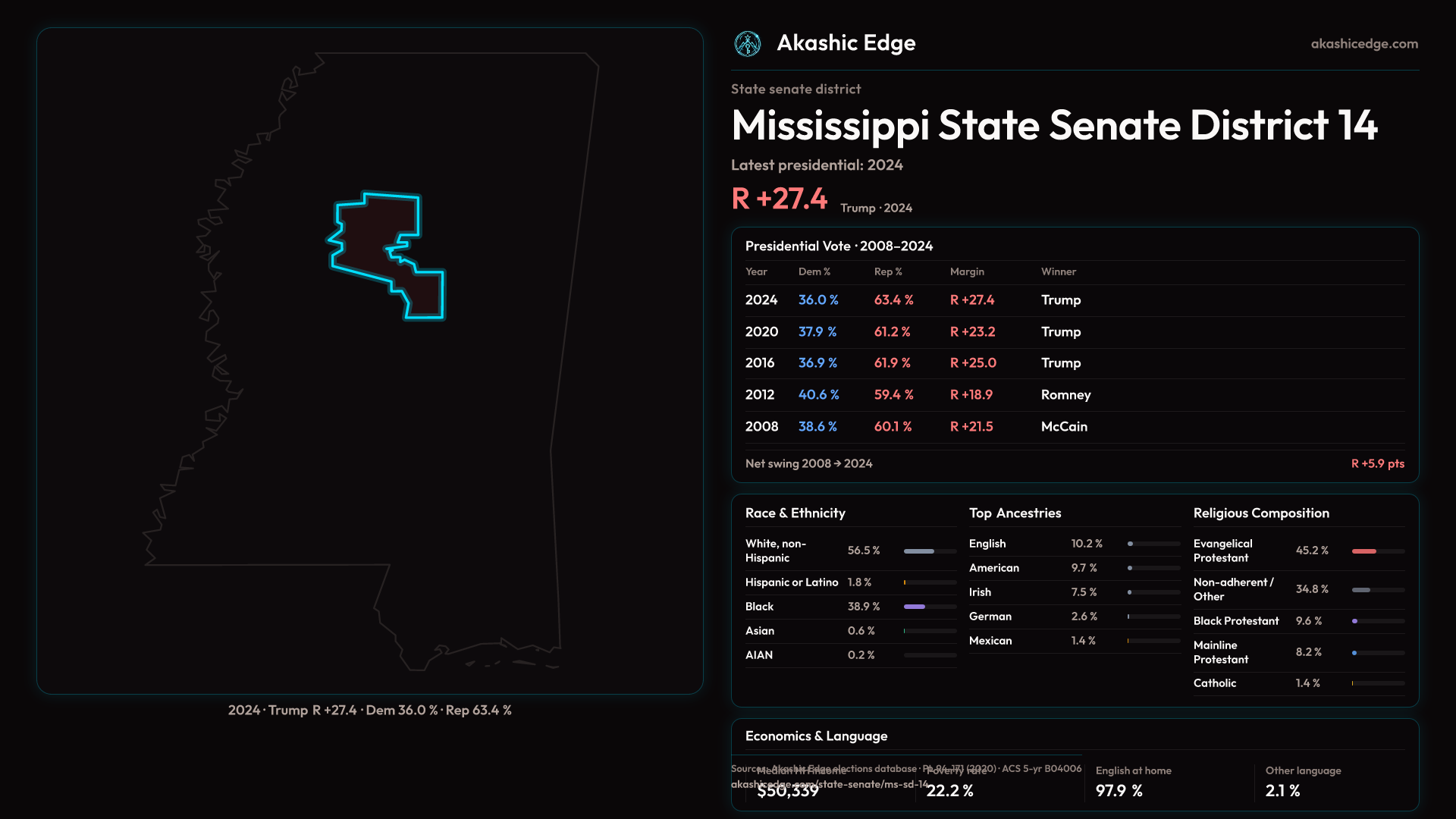 Who lives in Mississippi State Senate District 14? 54,111 residents as of the 2020 Census.