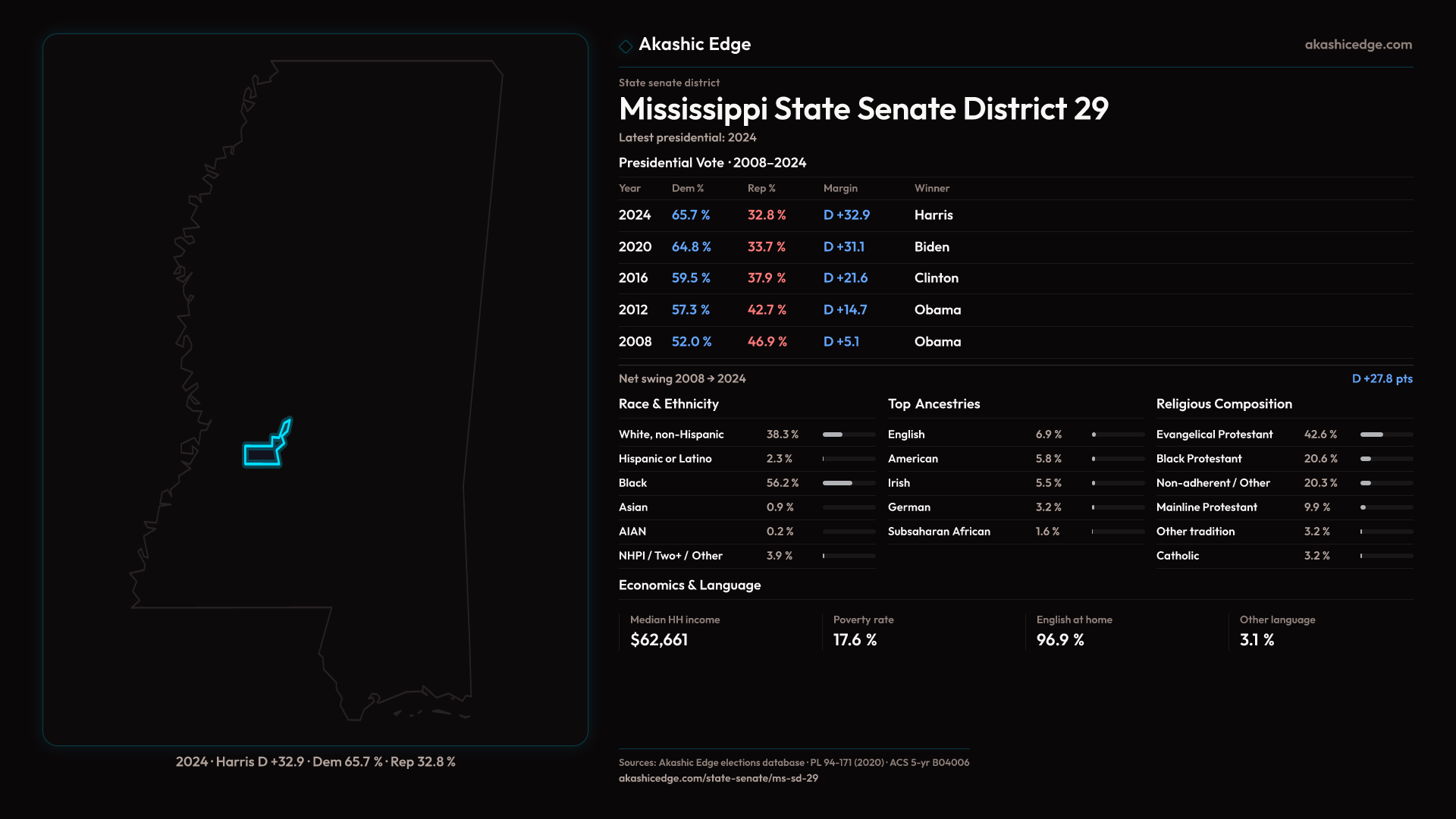 Who lives in Mississippi State Senate District 29? 54,712 residents as of the 2020 Census.
