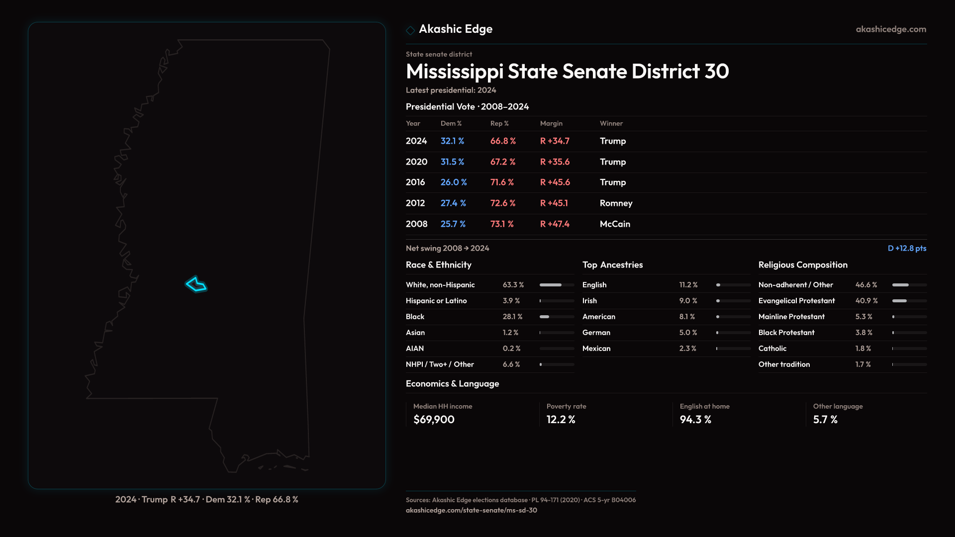 Read this geography's profile in three layers: local, state (where available), and national baseline.