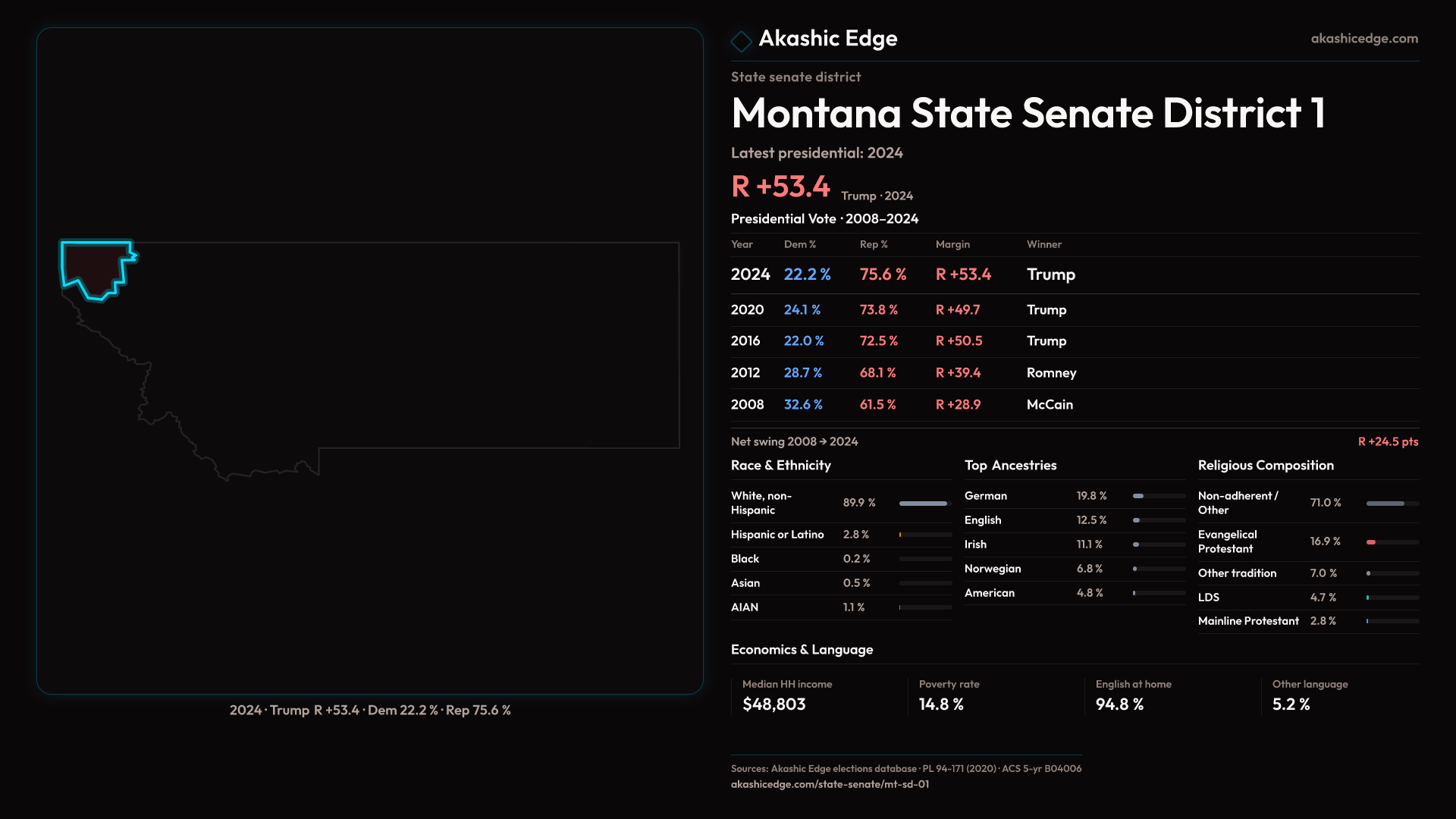 Read this geography's profile in three layers: local, state (where available), and national baseline.