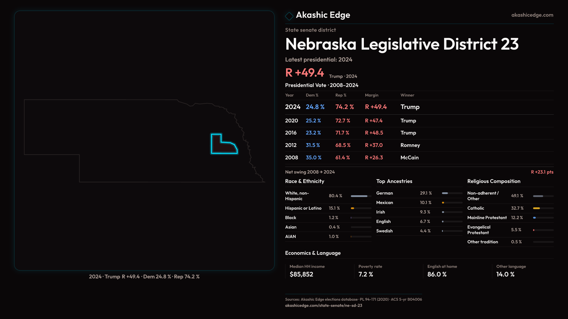 Who lives in Nebraska Legislative District 23? 39,651 residents as of the 2020 Census.