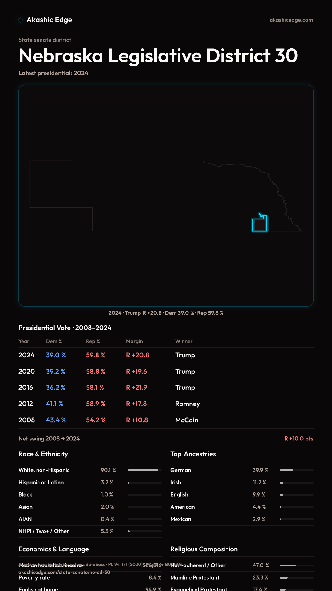 Who lives in Nebraska Legislative District 30? 41,576 residents as of the 2020 Census.