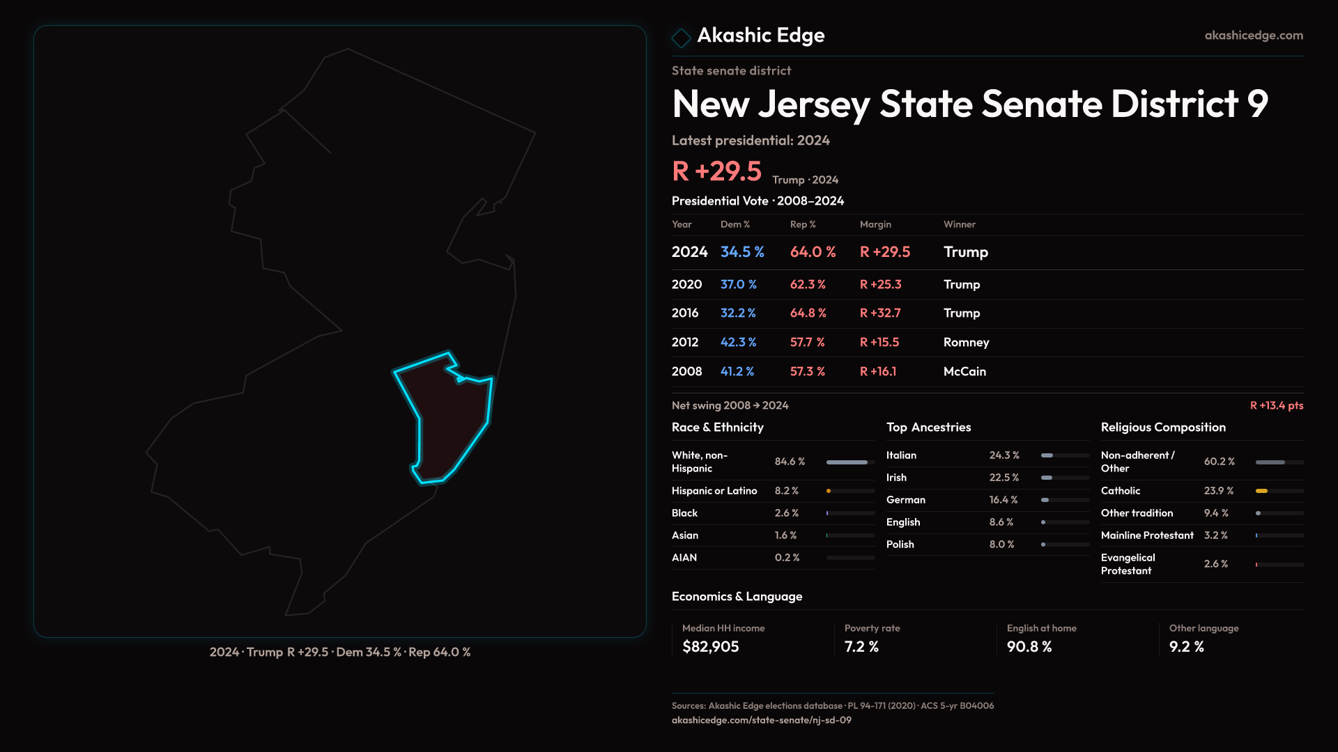 Shifted 4.2pp toward Republicans in 2024 — 230K residents