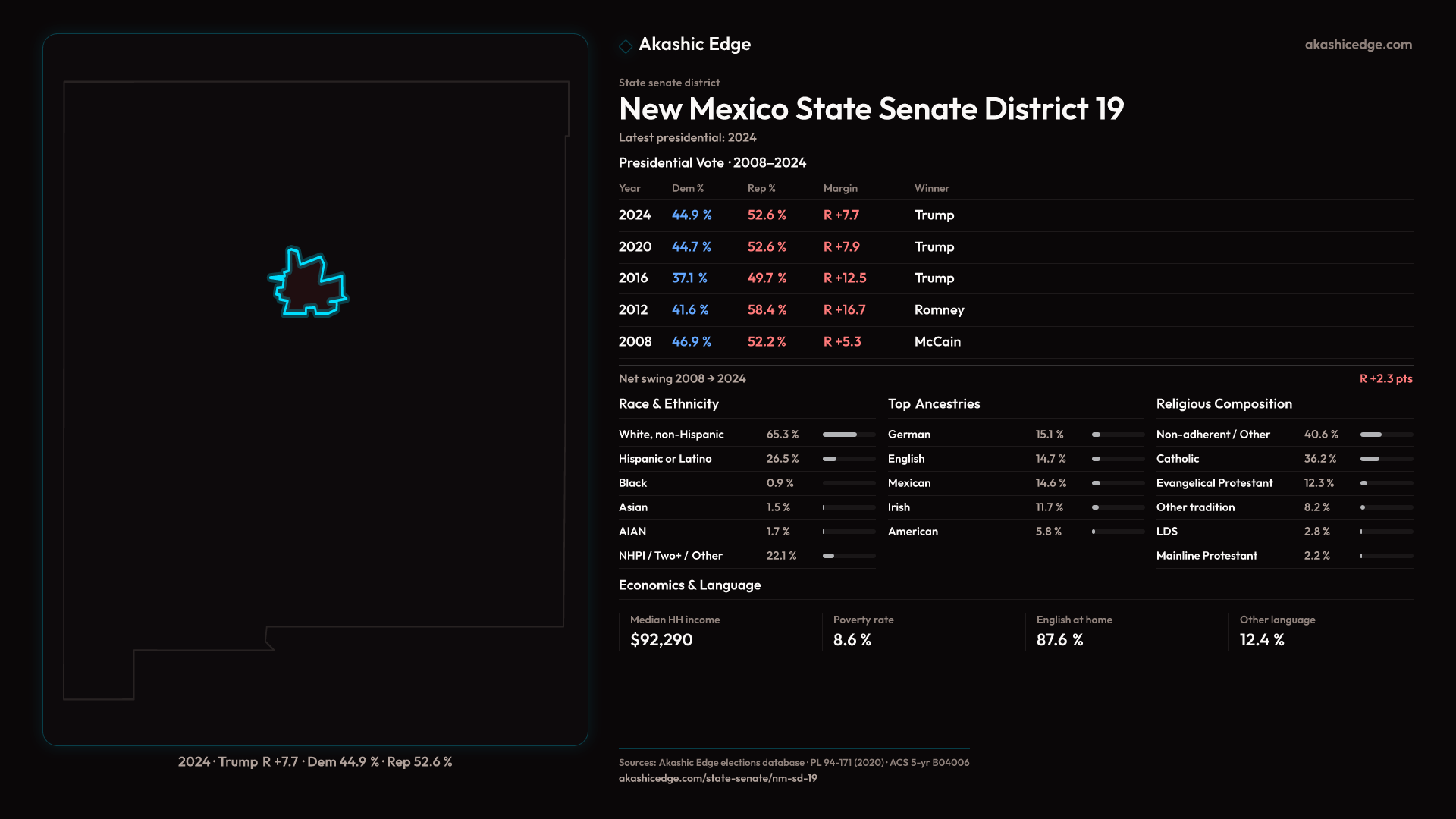 Who lives in New Mexico State Senate District 19? 50,289 residents as of the 2020 Census.