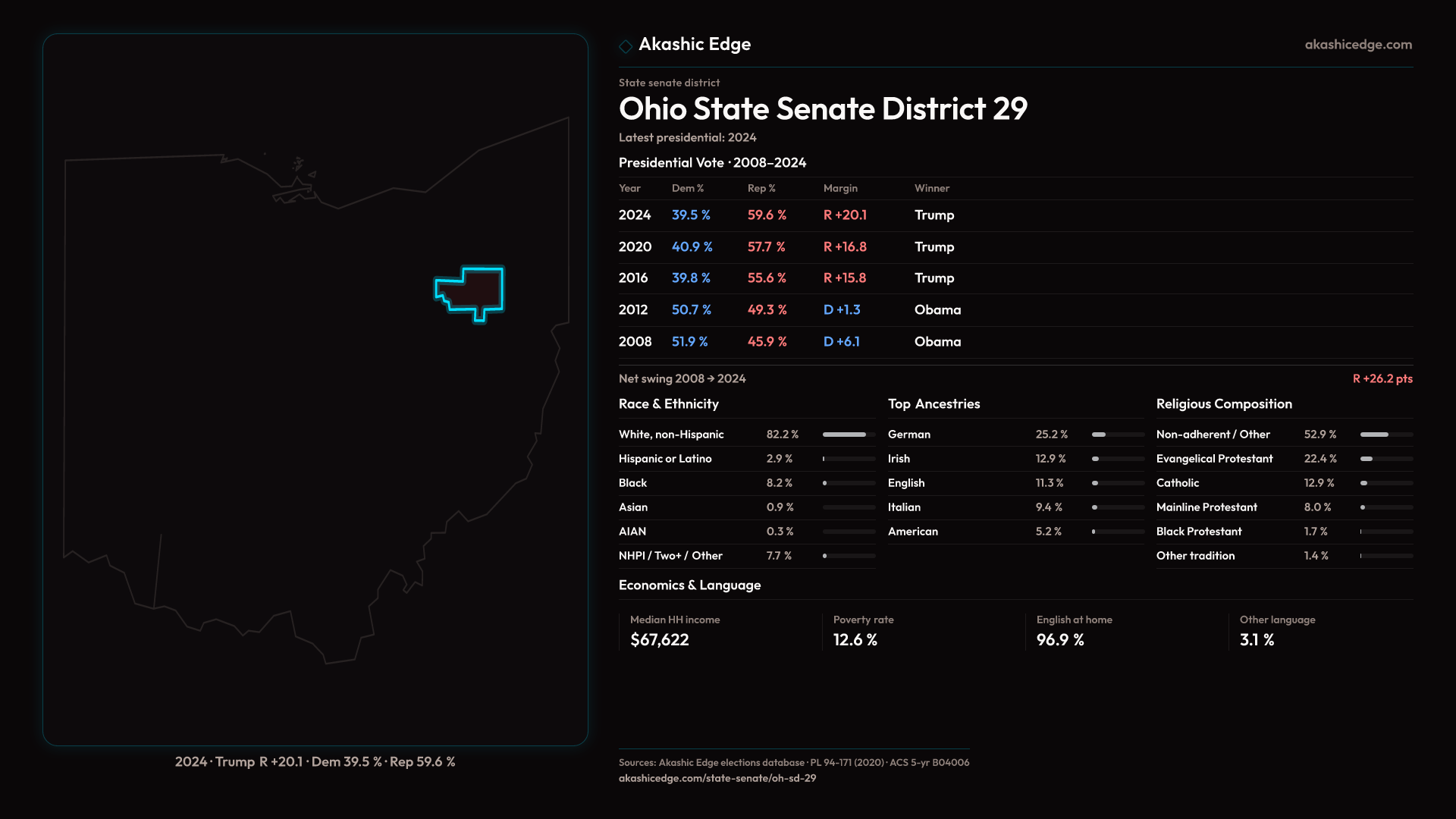 Who lives in Ohio State Senate District 29? 354,275 residents as of the 2020 Census.