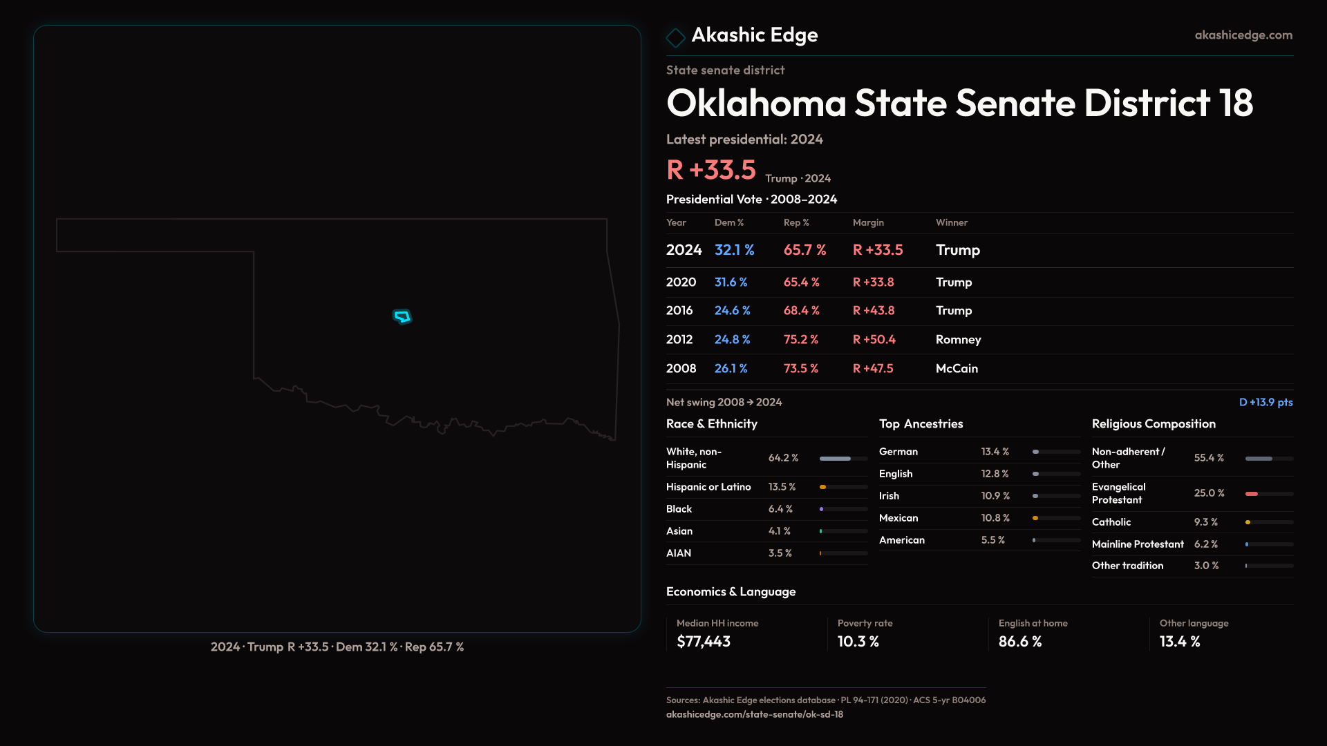 Who lives in Oklahoma State Senate District 18? 84,411 residents as of the 2020 Census.