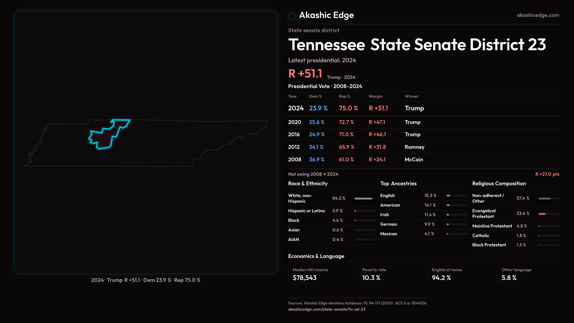 Read this geography's profile in three layers: local, state (where available), and national baseline.