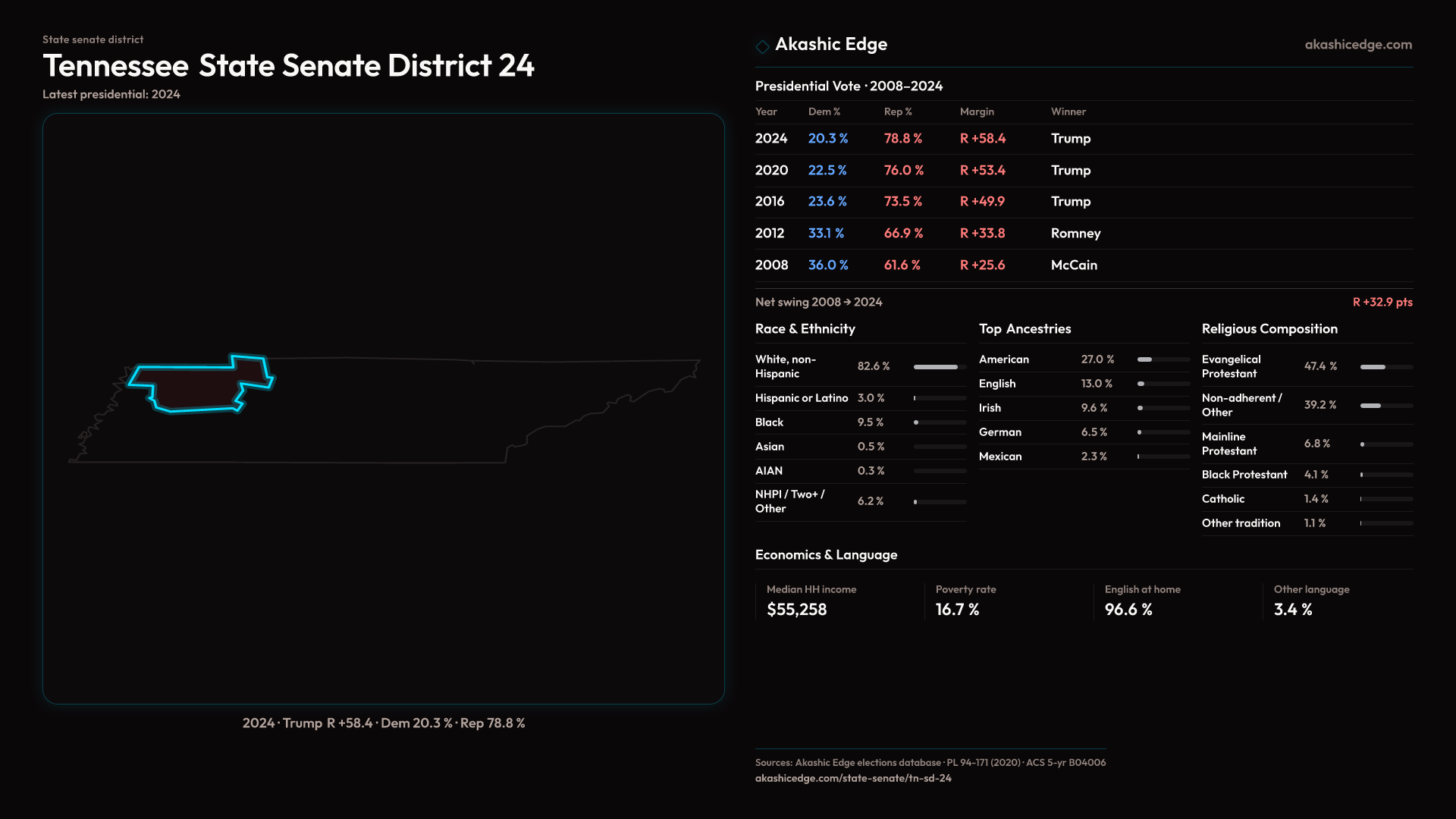 Who lives in Tennessee State Senate District 24? 212,561 residents as of the 2020 Census.