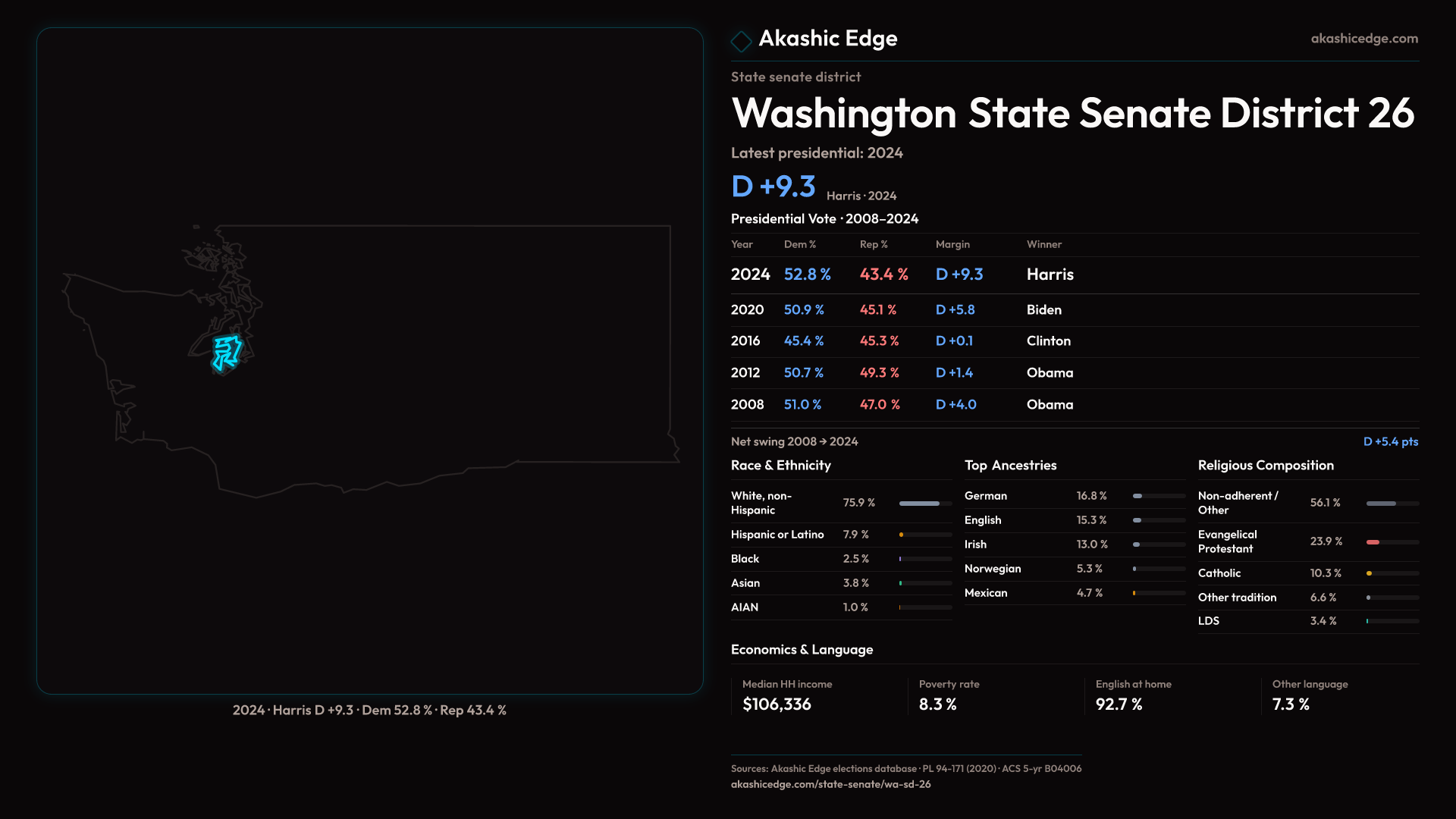 Explore WA-SD-26's political evolution with the Historian