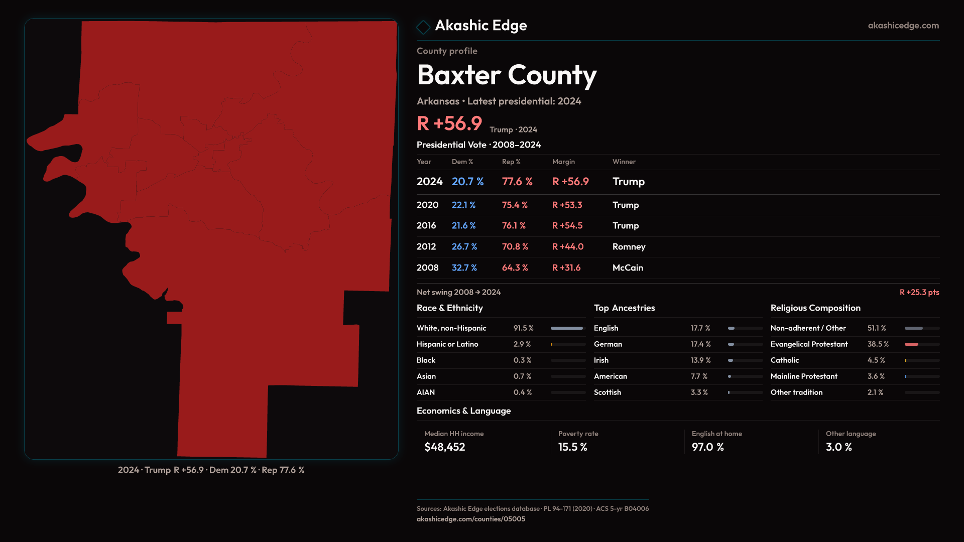 Safe Republican — shifted 3.5pp toward Republicans in 2024 — 38 presidential elections on record