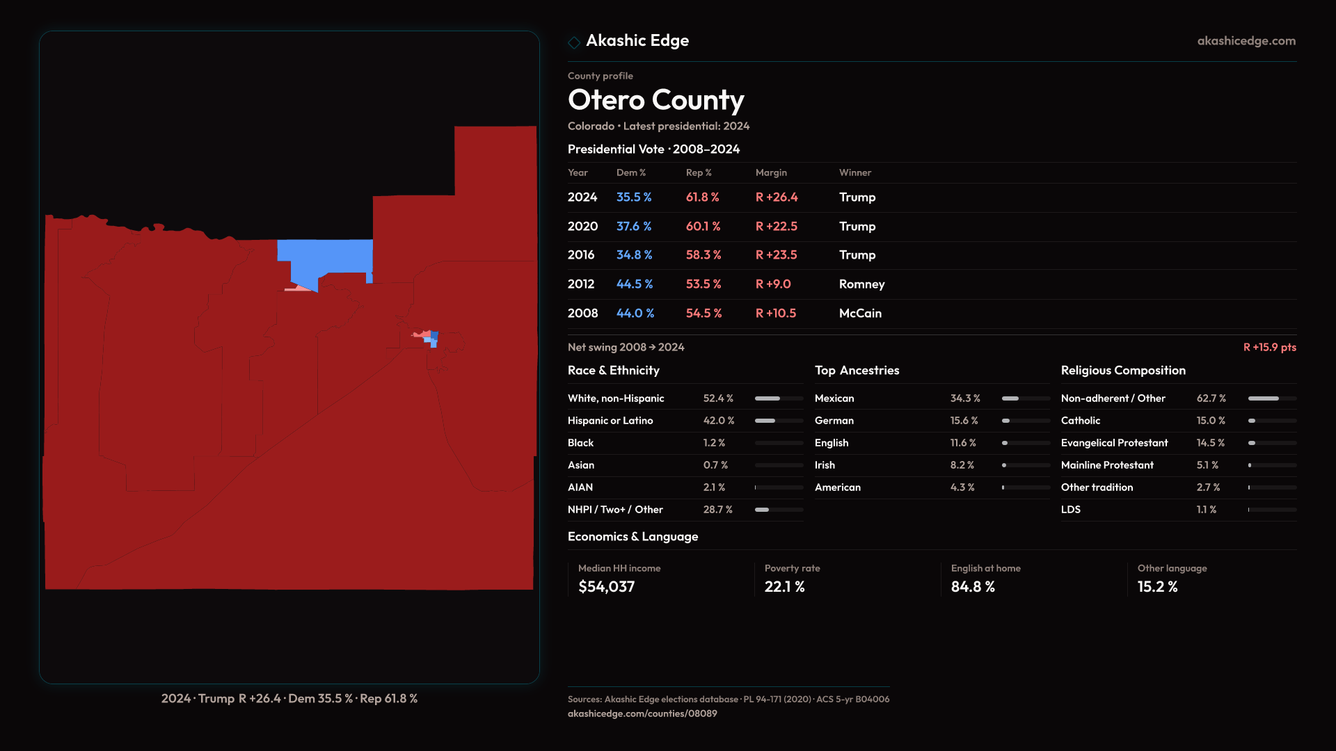 Safe Republican — shifted 3.9pp toward Republicans in 2024 — 34 presidential elections on record