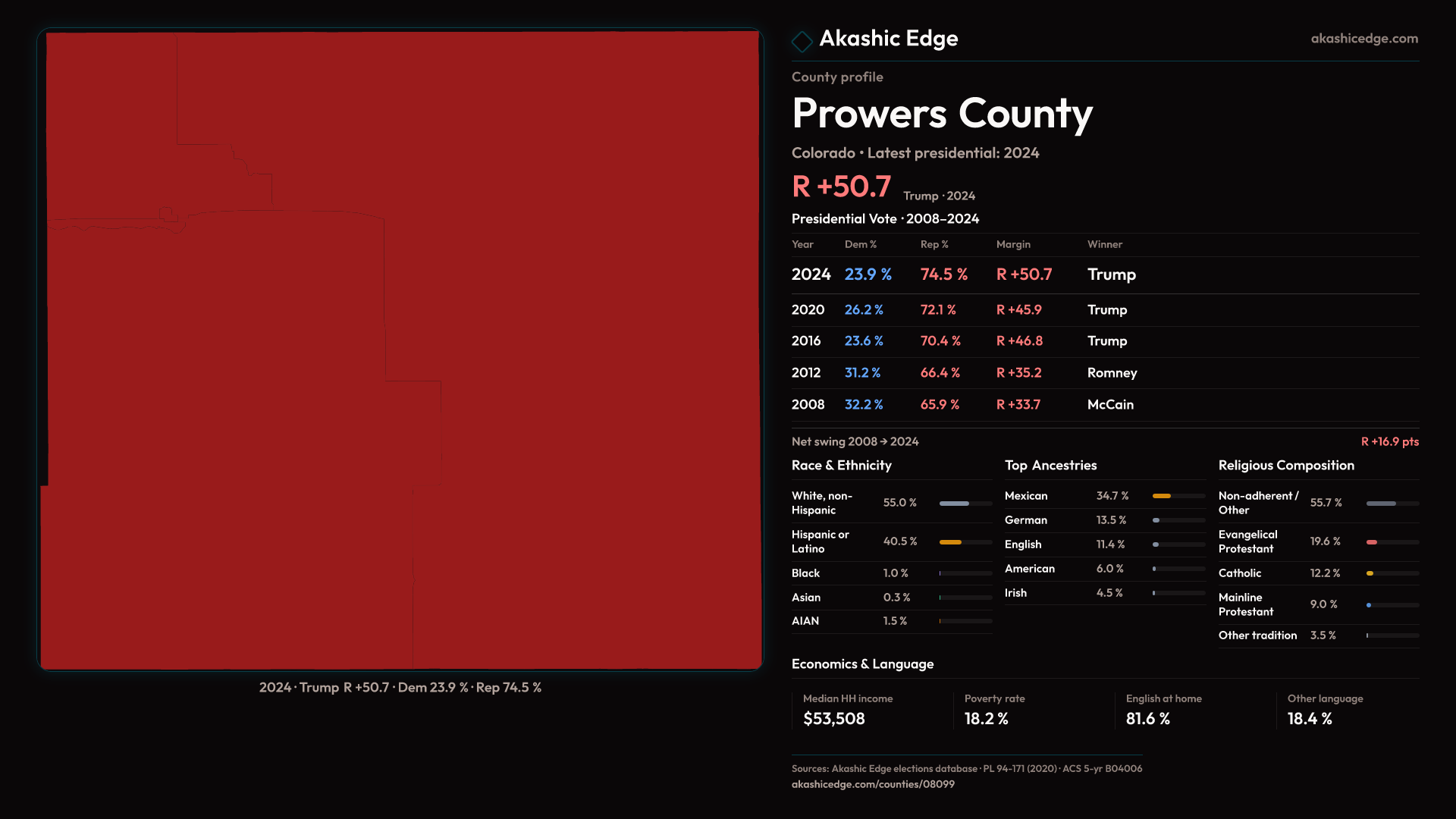 Shifted 4.8pp toward Republicans in 2024 — 34 presidential elections on record