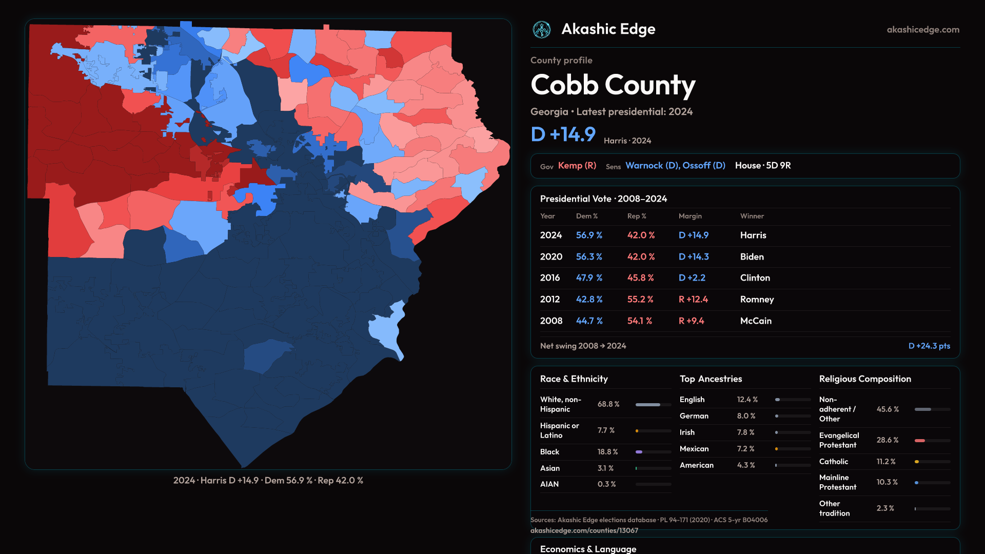 Presidential margin · 2008 → 2024