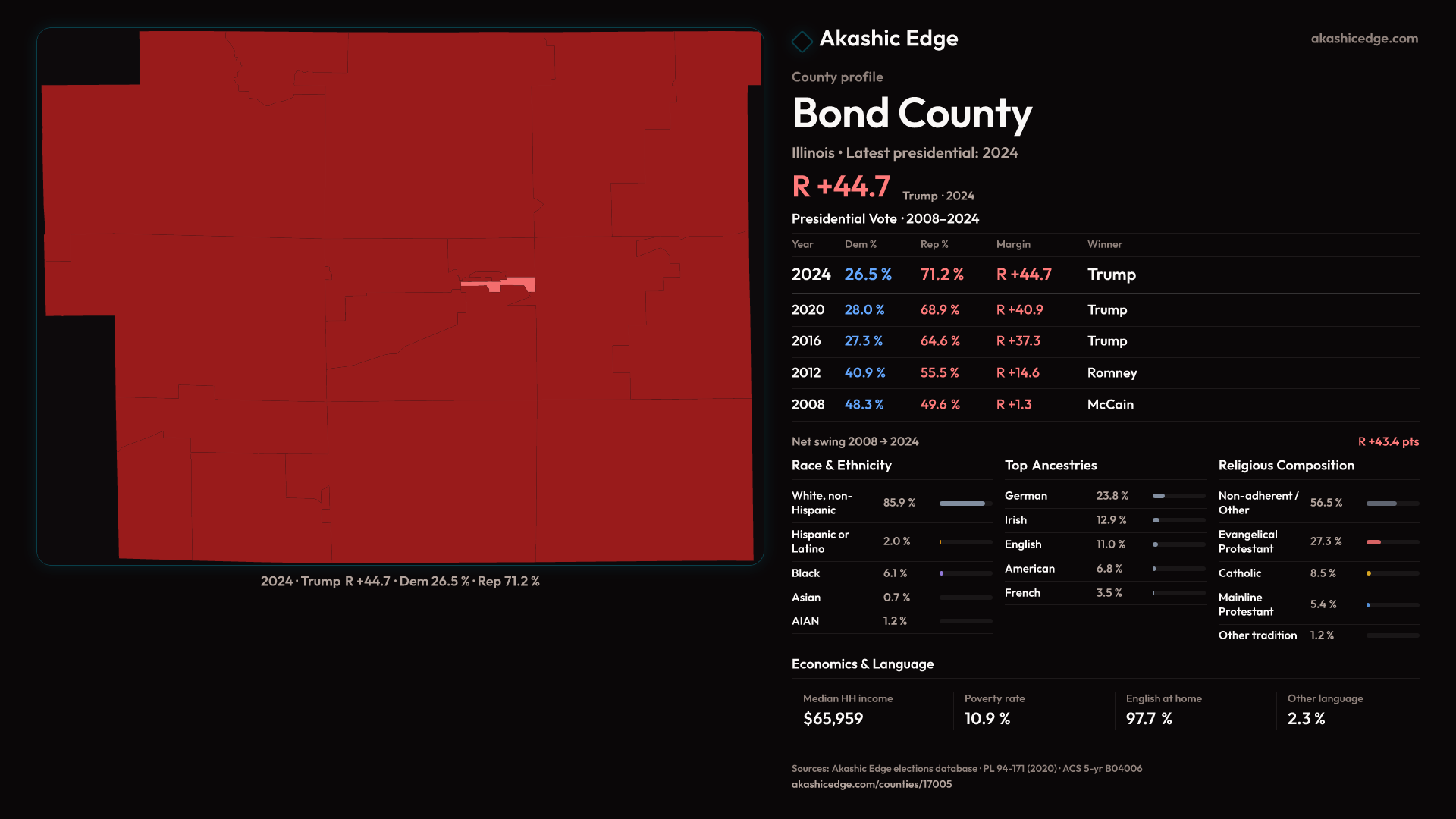 Safe Republican — shifted 3.9pp toward Republicans in 2024 — 40 presidential elections on record