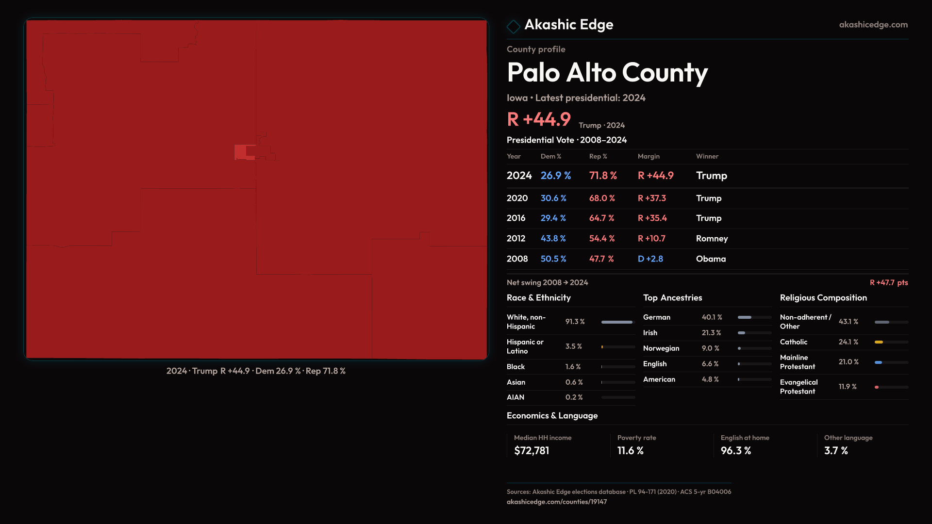 Contextual statewide polling for Iowa. County pages stay rooted in county returns, but live statewide polling helps frame the current cycle.