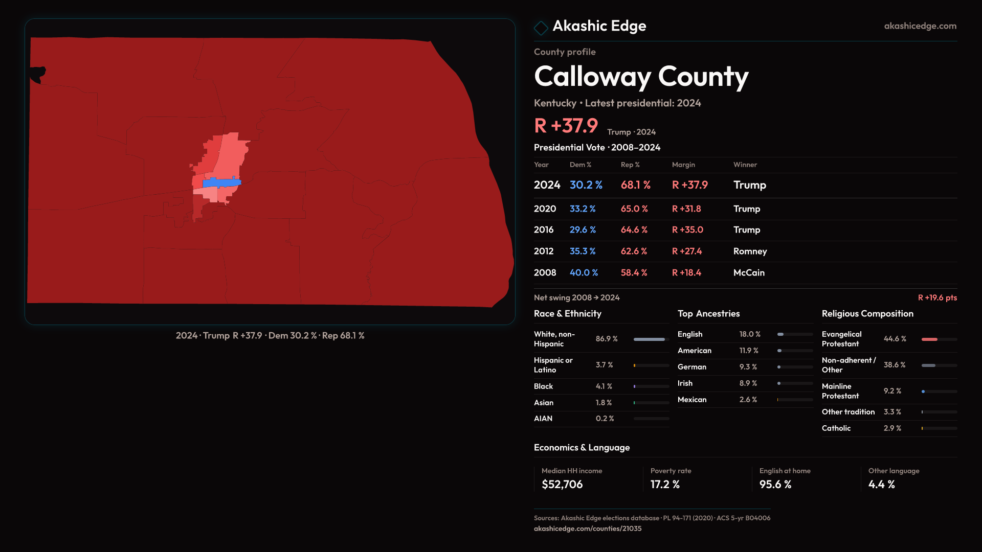 Safe Republican — shifted 6.1pp toward Republicans in 2024 — 40 presidential elections on record