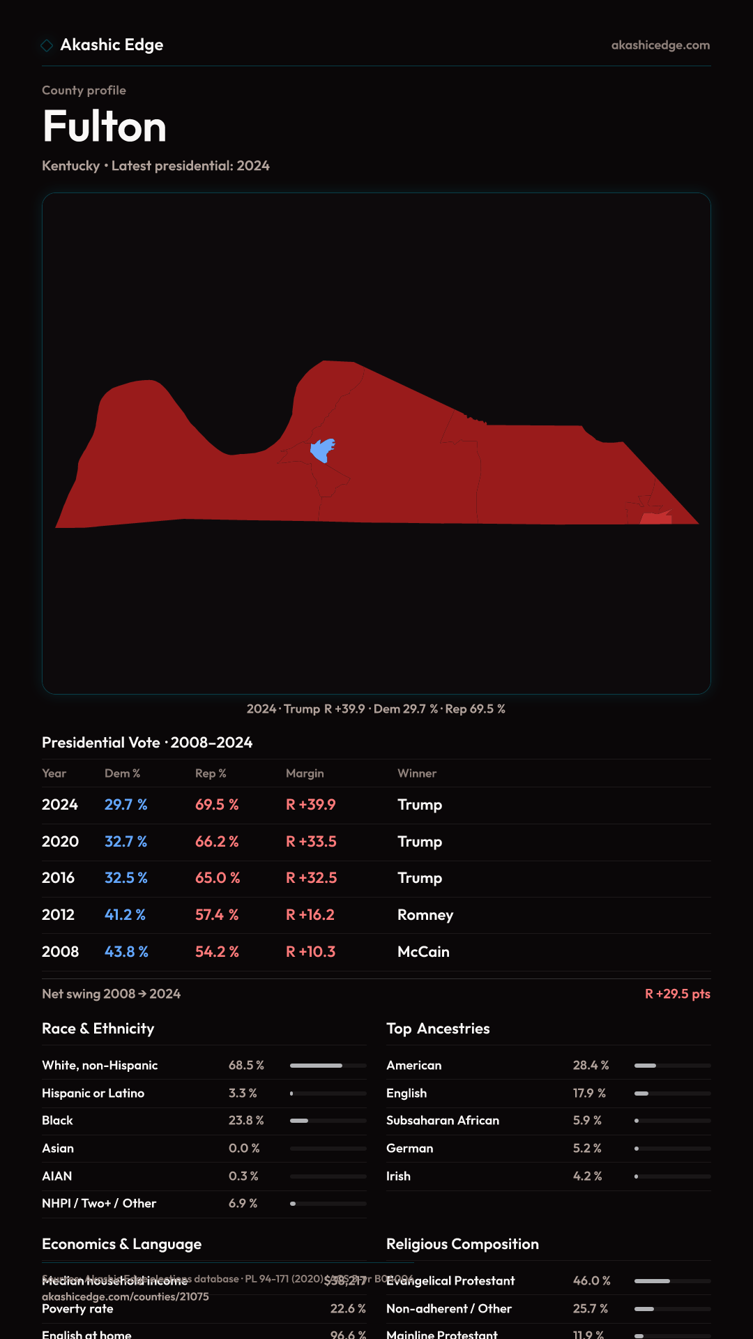 Shifted 6.4pp toward Republicans in 2024 — 40 presidential elections on record