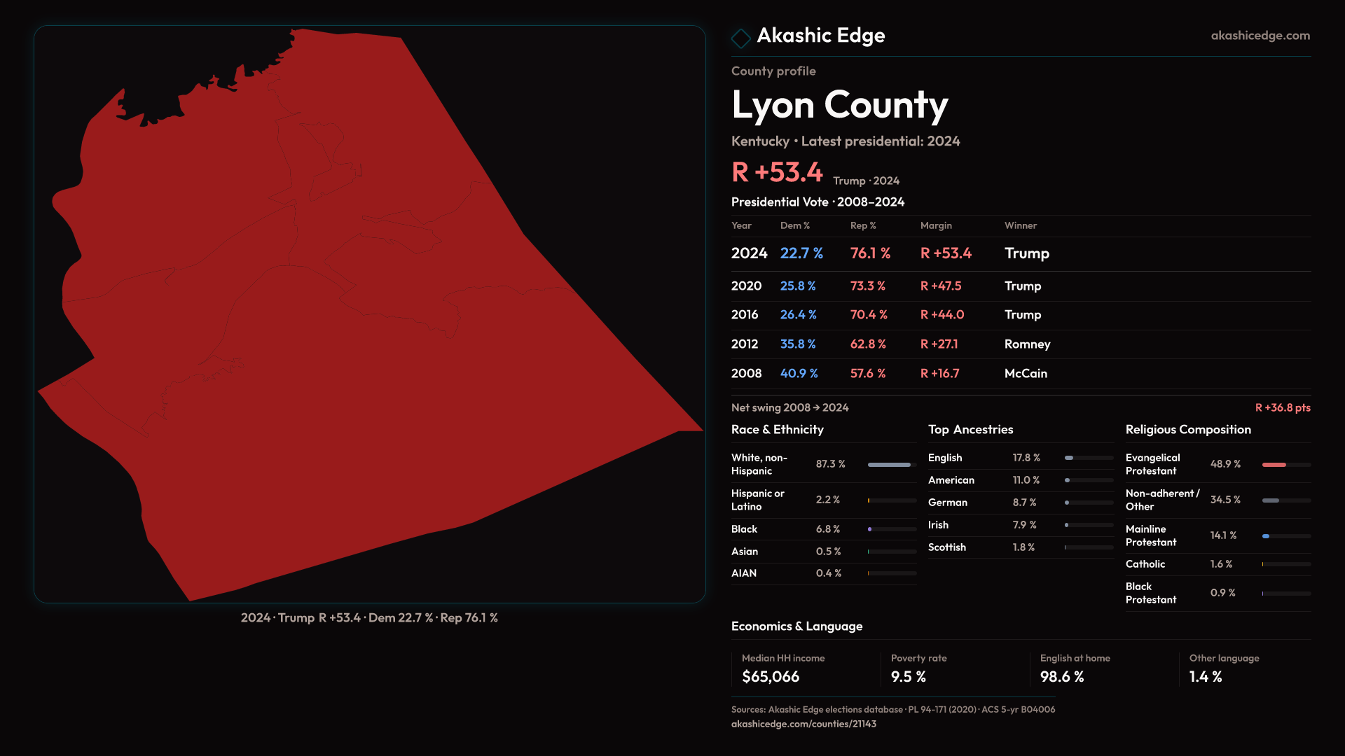 Shifted 5.9pp toward Republicans in 2024 — 40 presidential elections on record