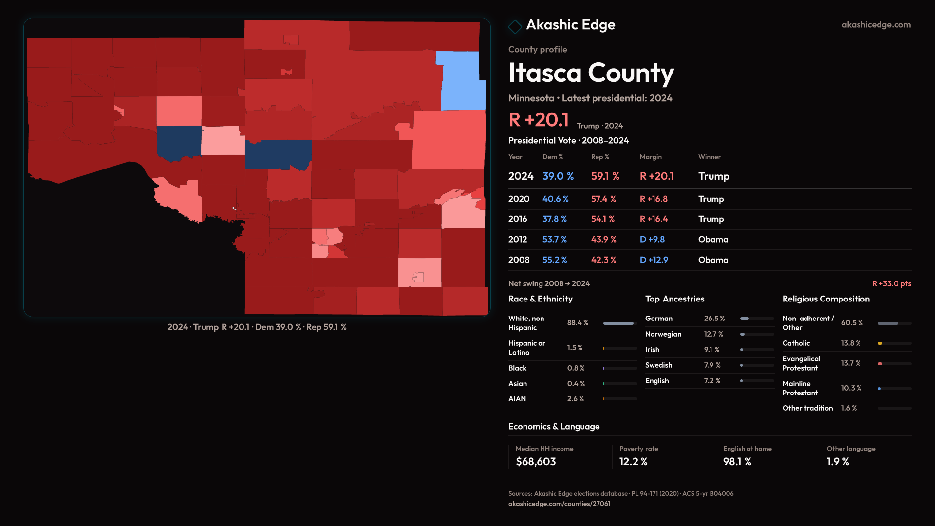 Safe Republican — shifted 3.3pp toward Republicans in 2024 — 35 presidential elections on record