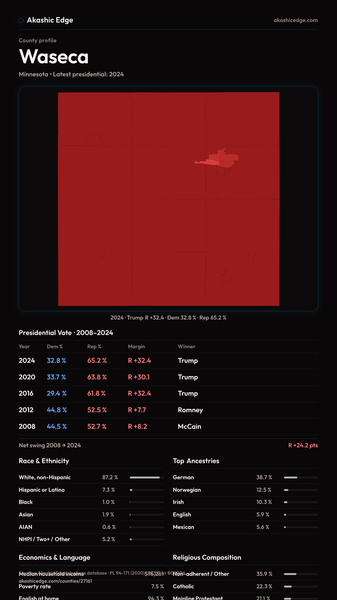 Presidential margin · 2008 → 2024