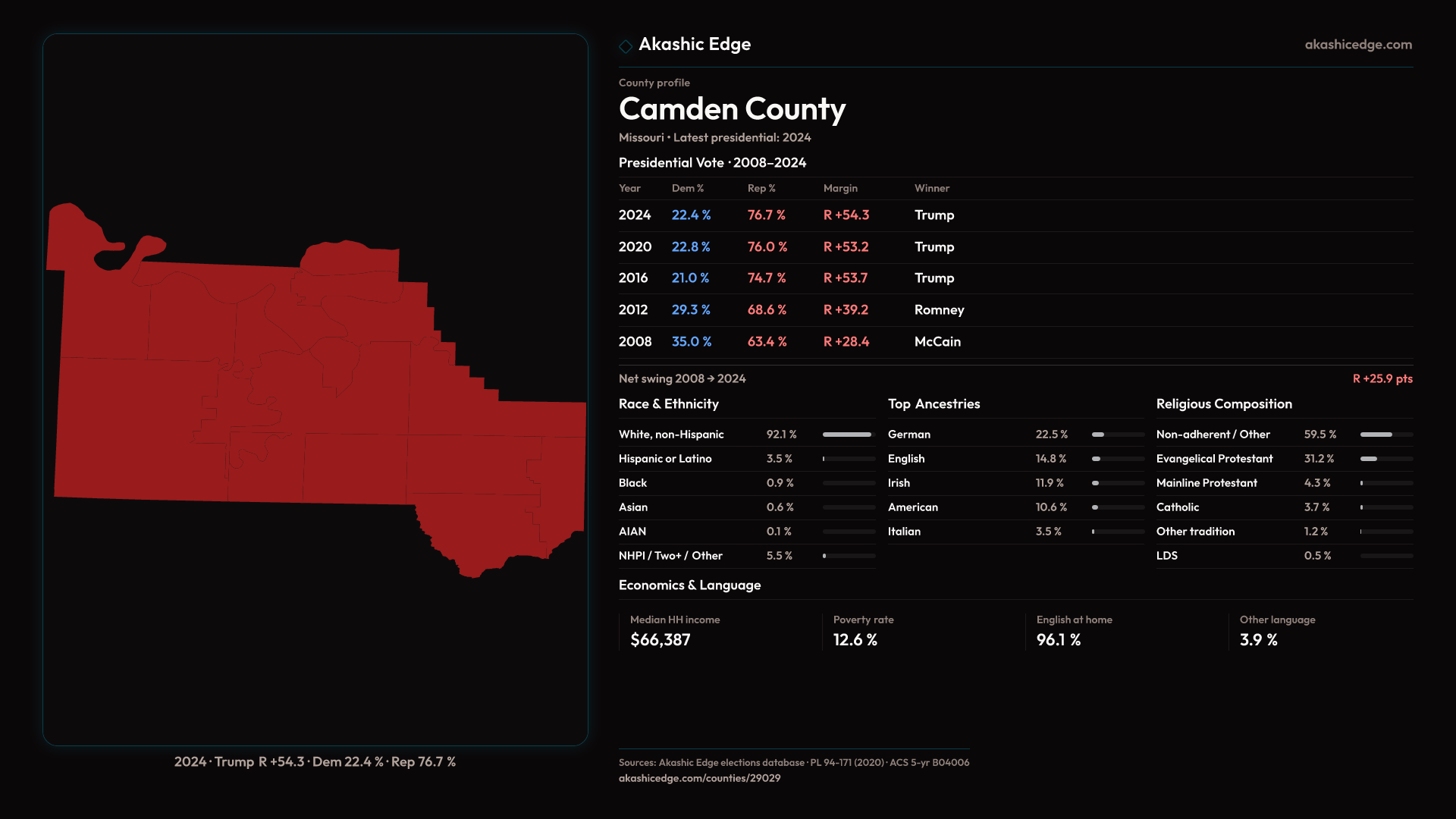Presidential margin · 2008 → 2024