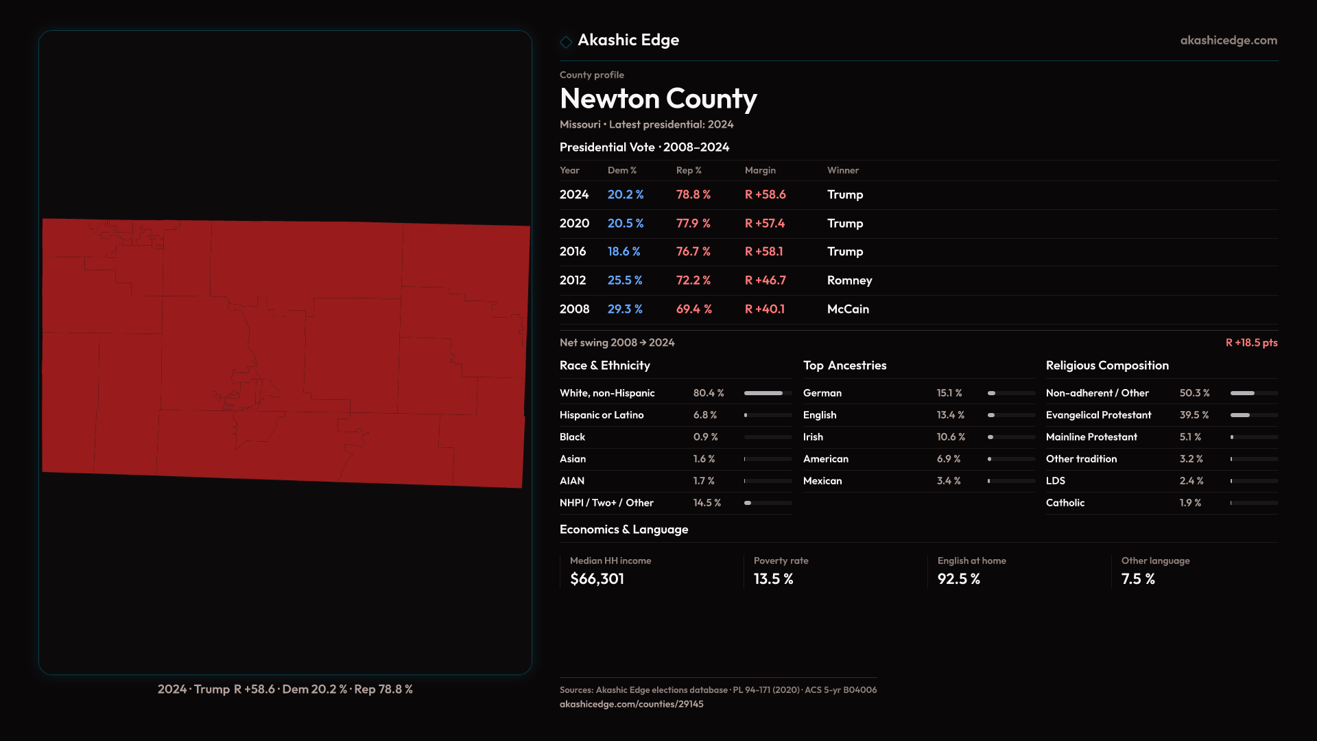 Presidential margin · 2008 → 2024