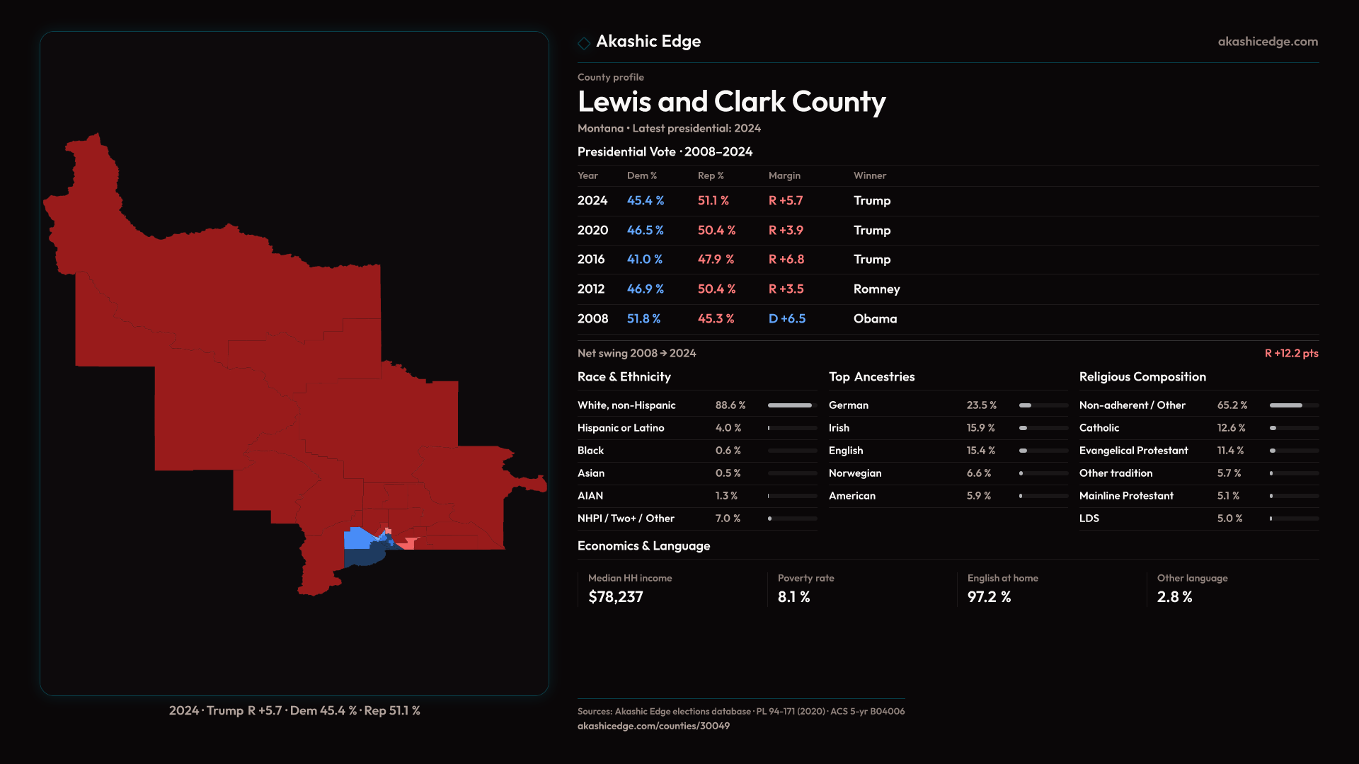 Presidential margin · 2008 → 2024