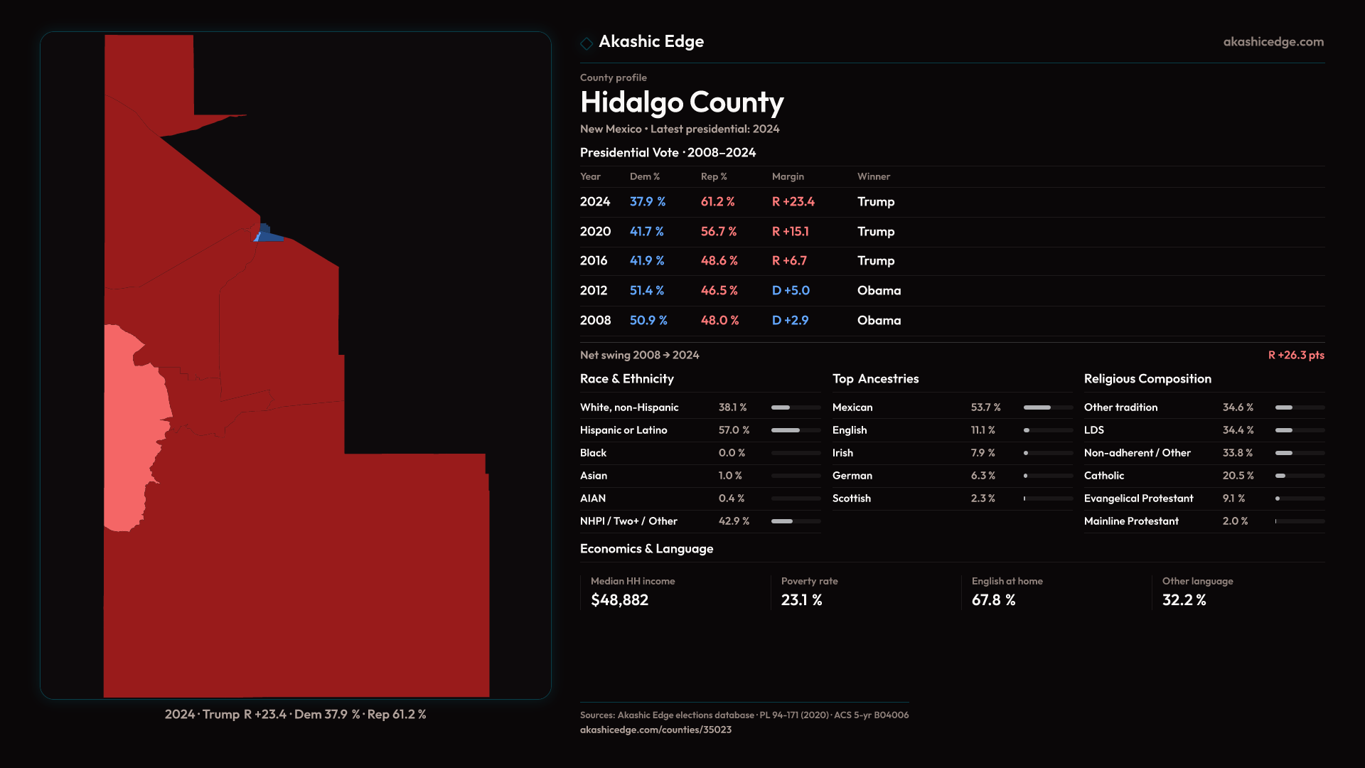 Safe Republican — shifted 8.3pp toward Republicans in 2024 — 27 presidential elections on record