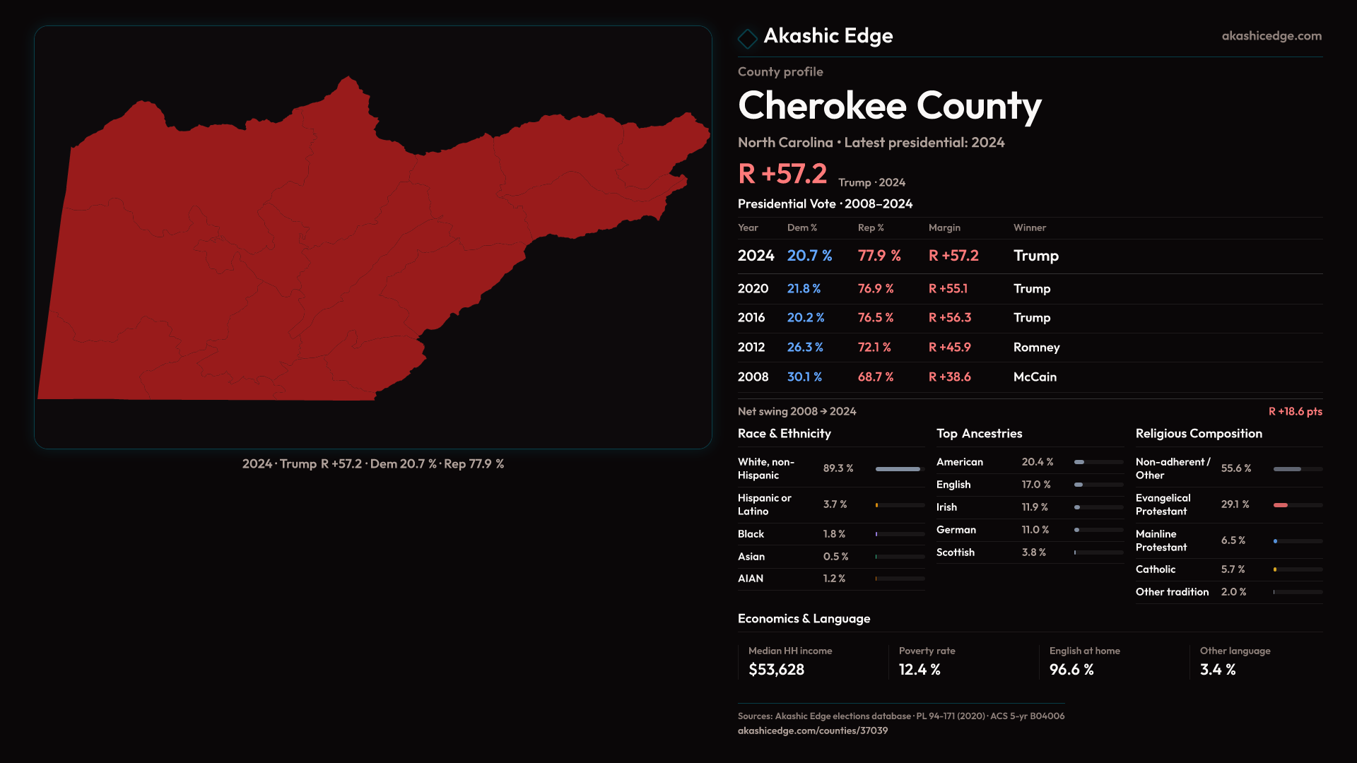 Presidential margin · 2008 → 2024
