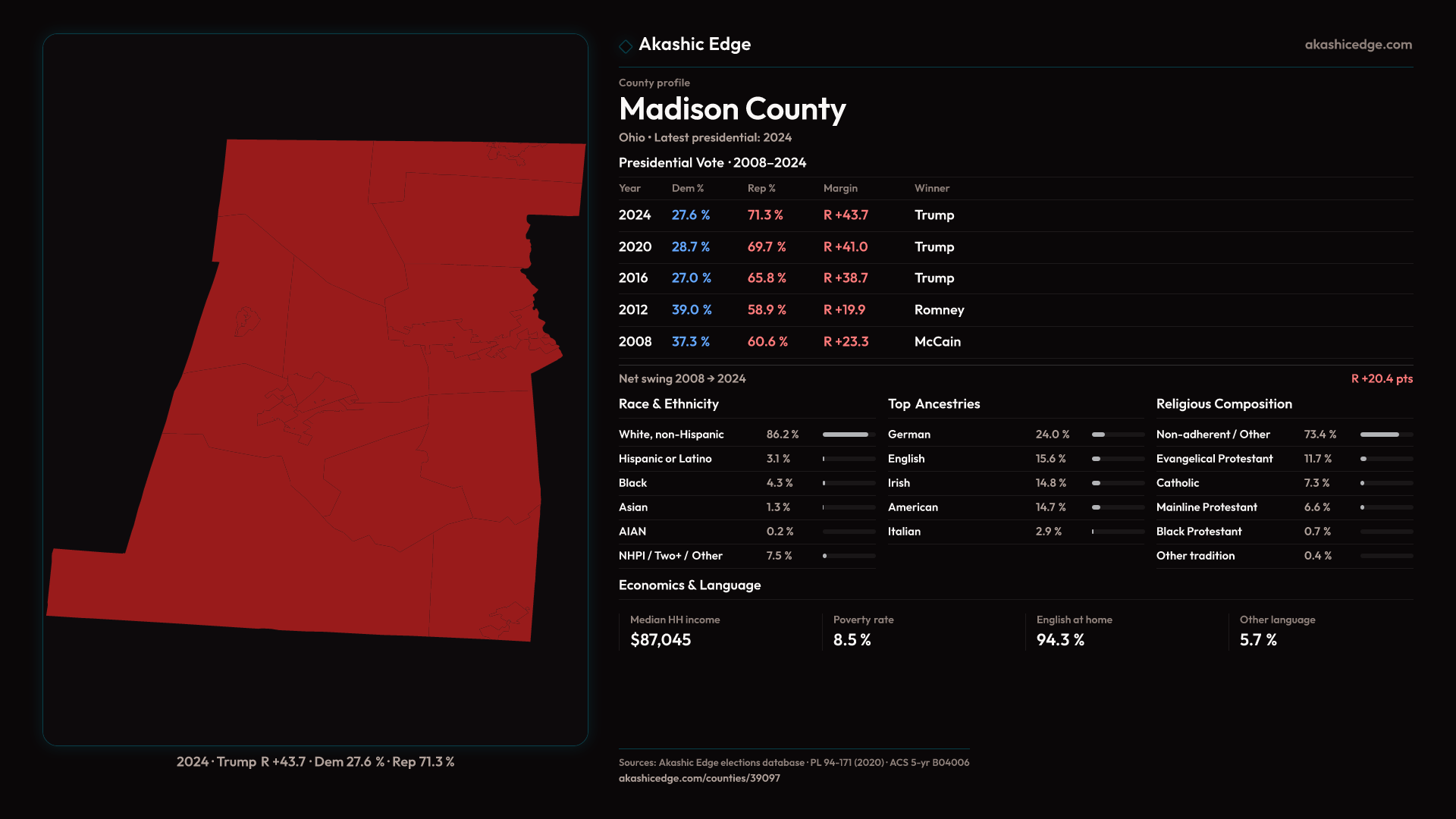 Presidential margin · 2008 → 2024