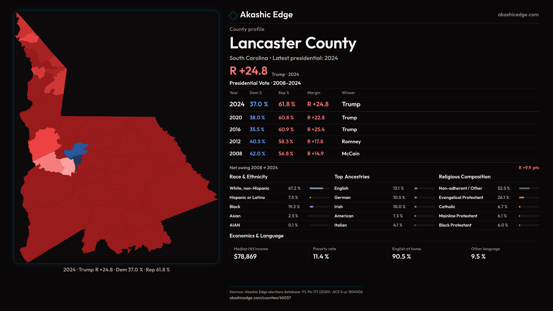 Presidential margin · 2008 → 2024