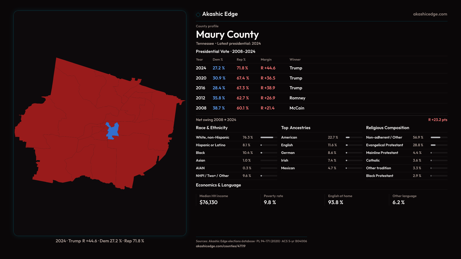Safe Republican — shifted 8.1pp toward Republicans in 2024 — 40 presidential elections on record