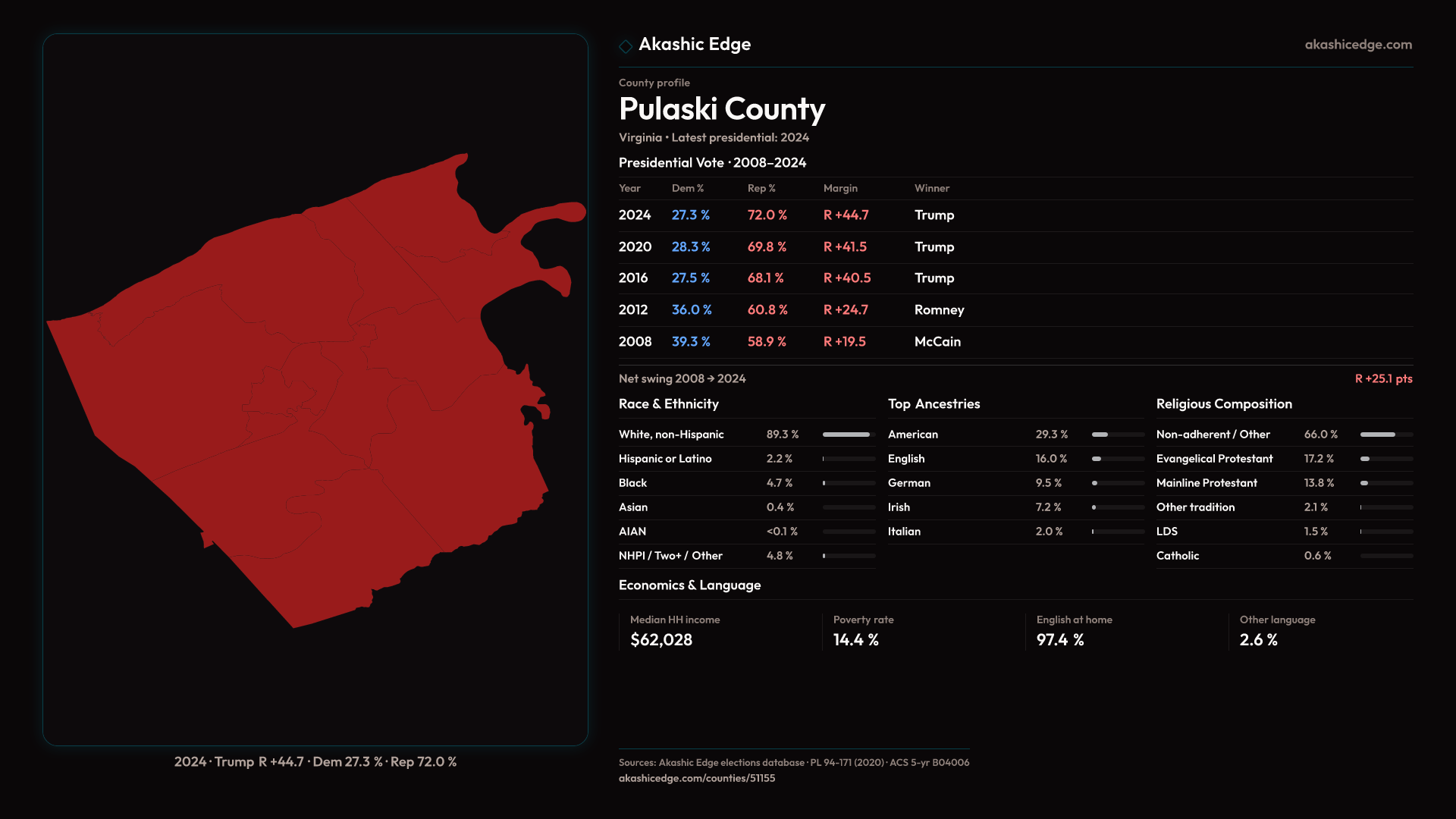 Safe Republican — shifted 3.2pp toward Republicans in 2024 — 39 presidential elections on record