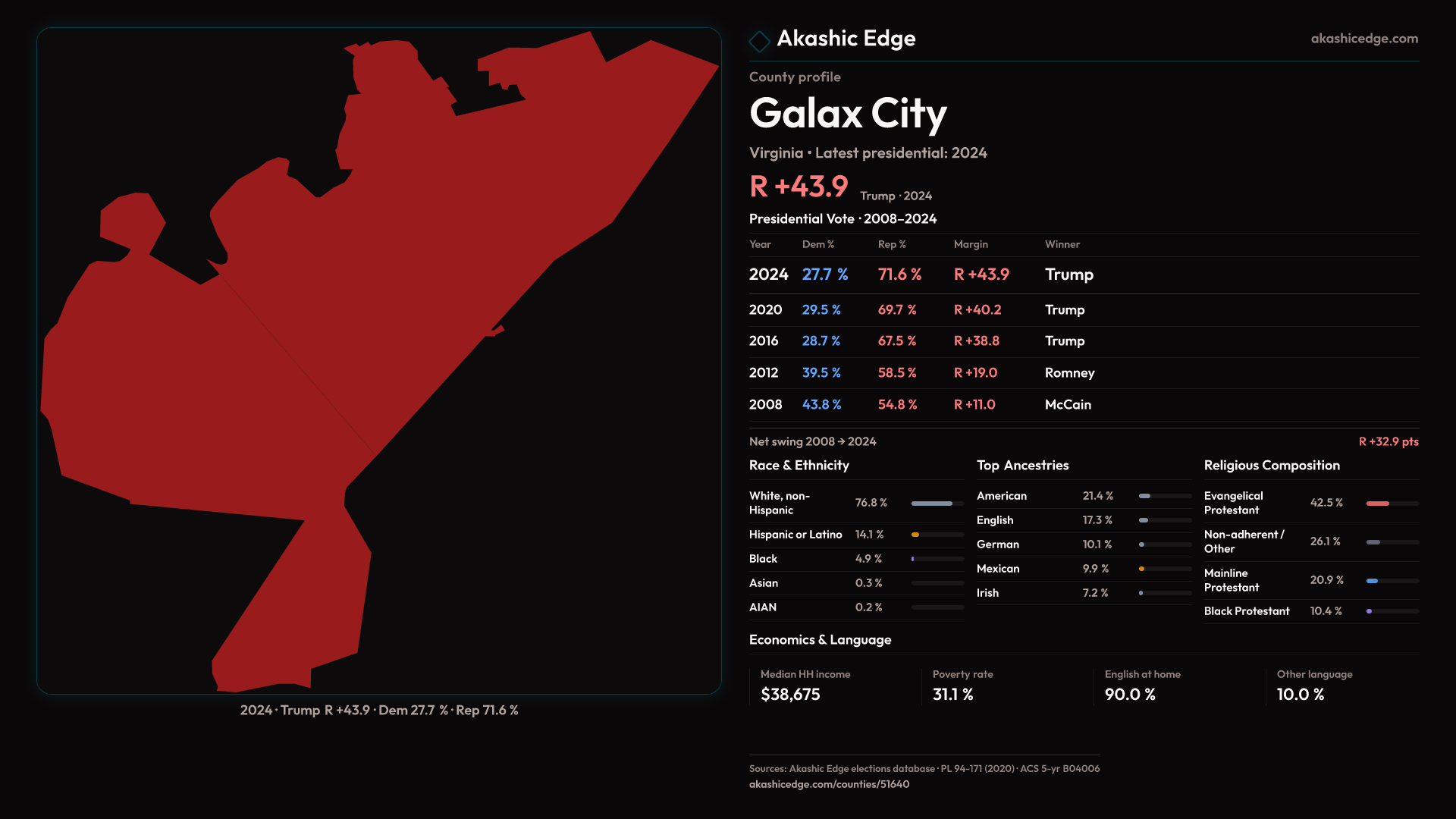 Shifted 3.7pp toward Republicans in 2024 — 18 presidential elections on record