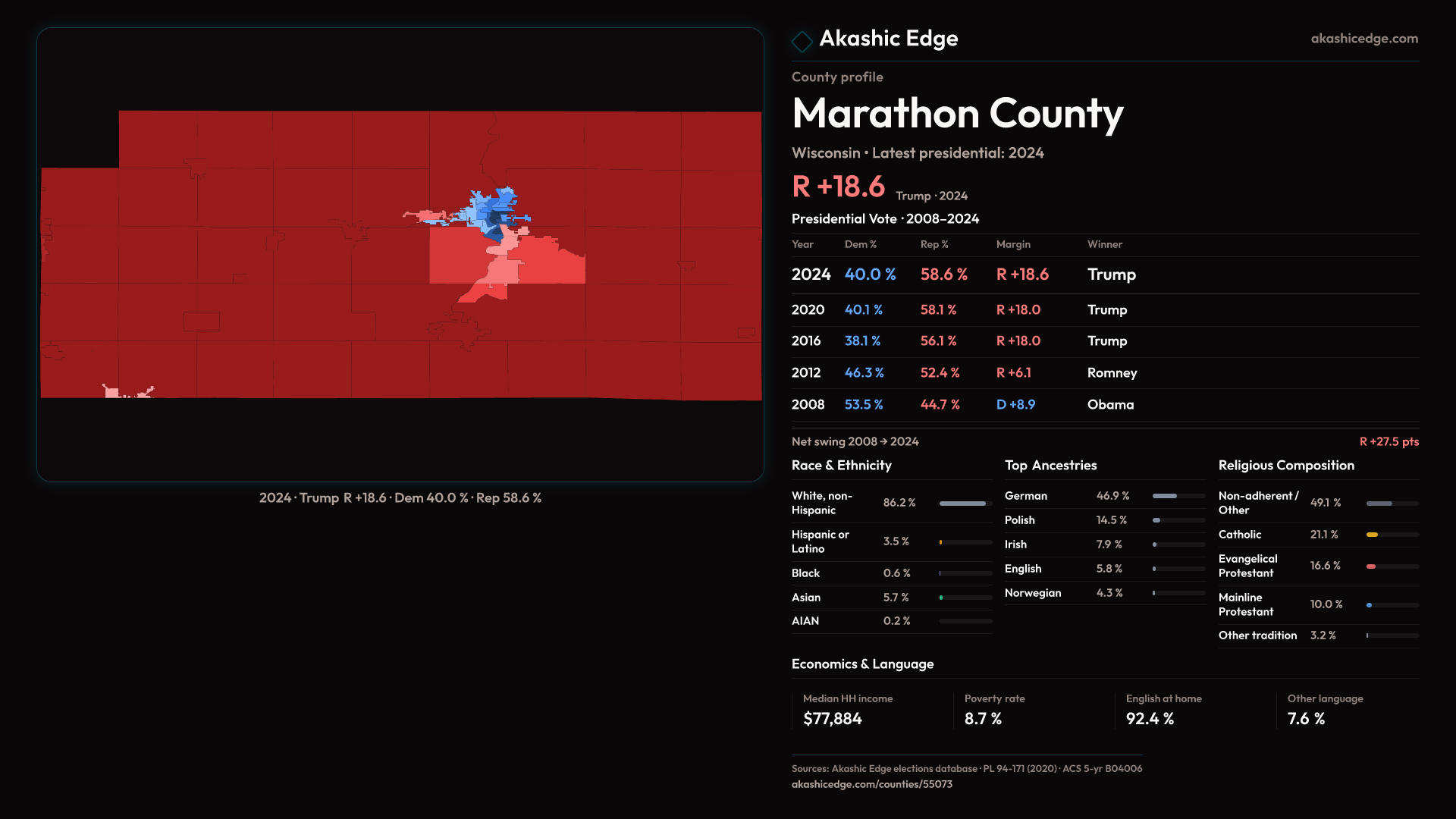 Presidential margin · 2008 → 2024