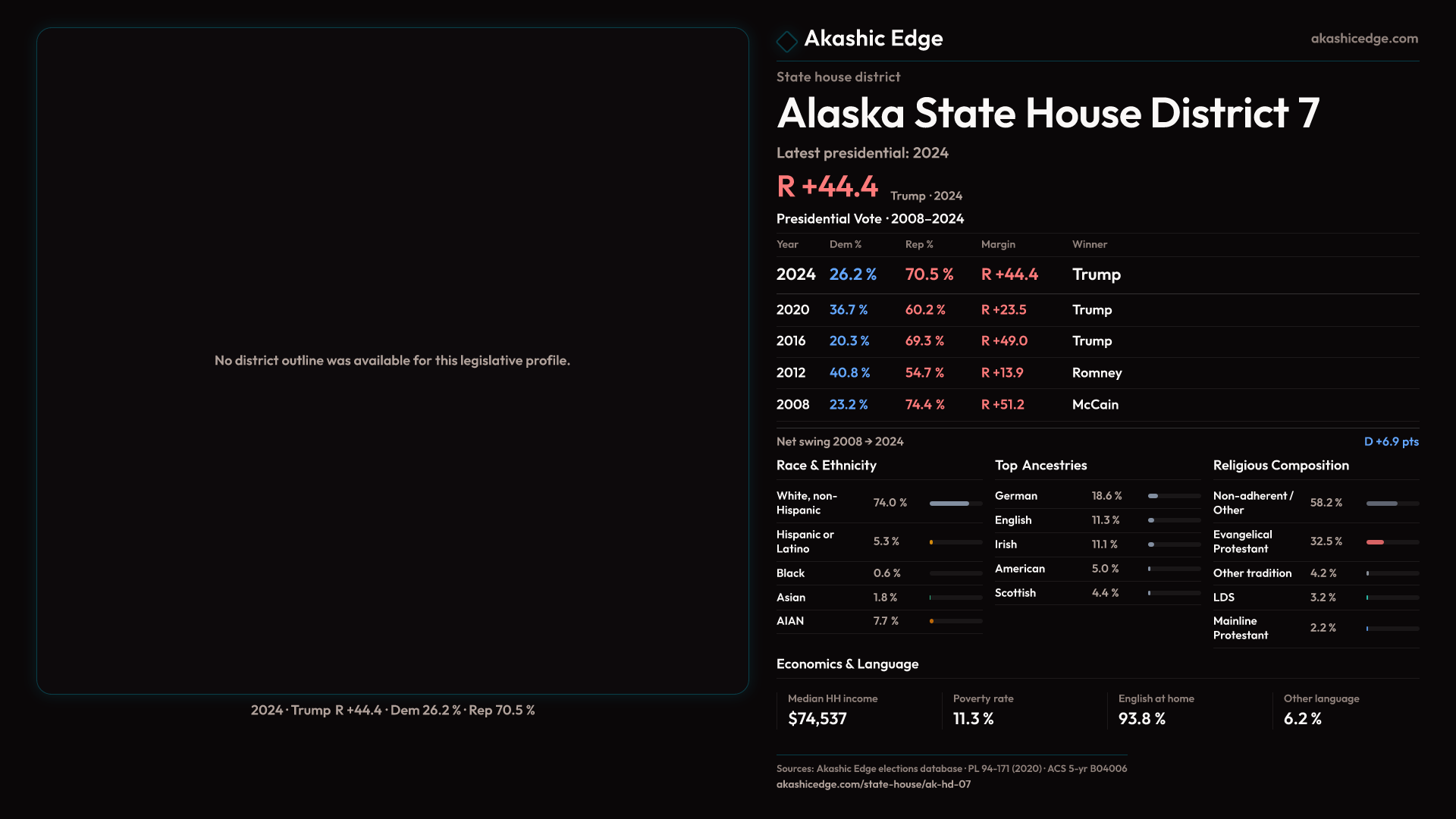 Read this geography's profile in three layers: local, state (where available), and national baseline.