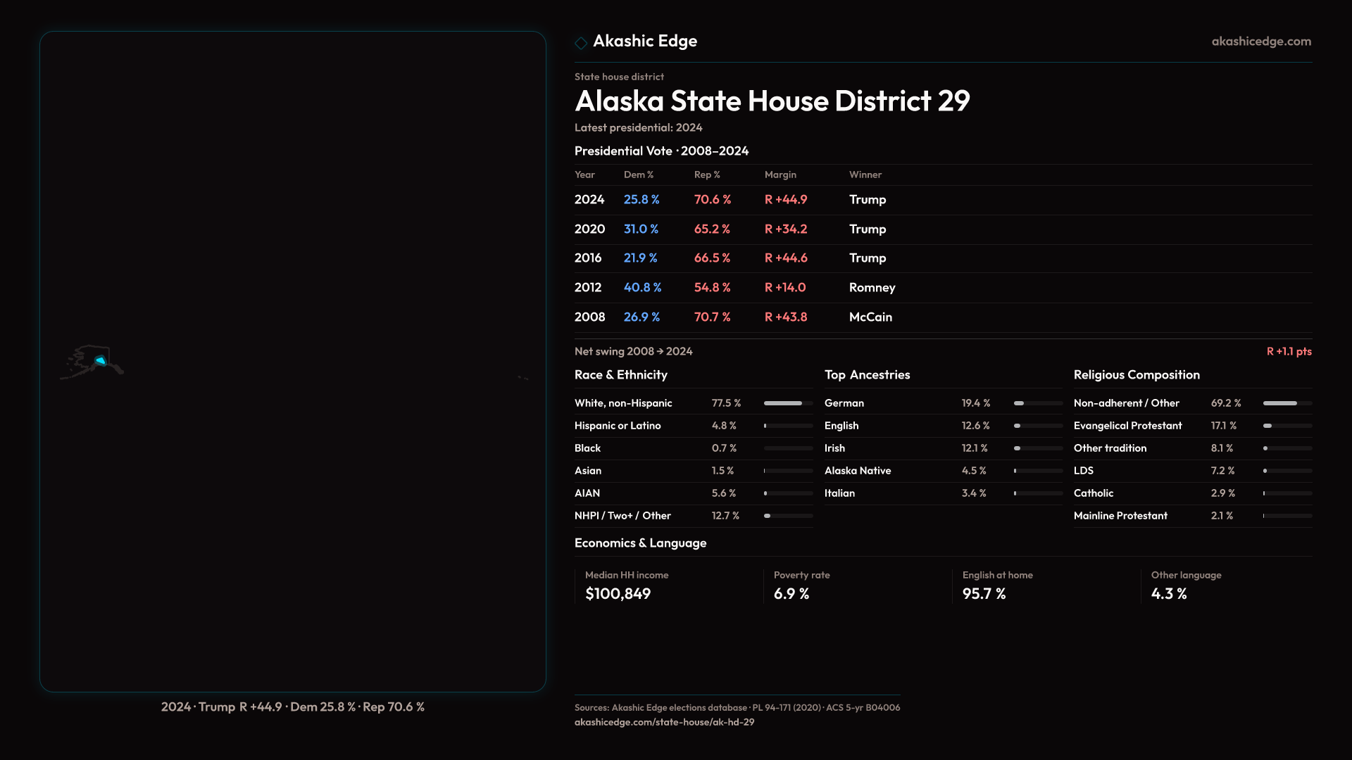 Who lives in Alaska State House District 29? 18,780 residents as of the 2020 Census.