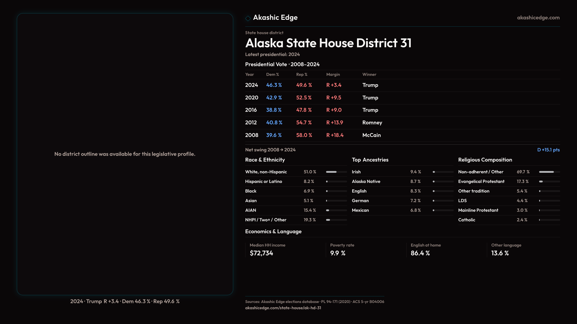 Who lives in Alaska State House District 31? 18,294 residents as of the 2020 Census.
