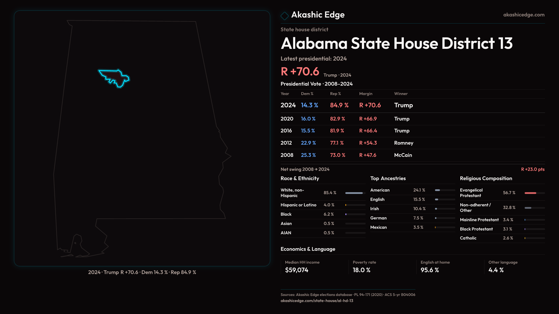 Who lives in Alabama State House District 13? 48,294 residents as of the 2020 Census.