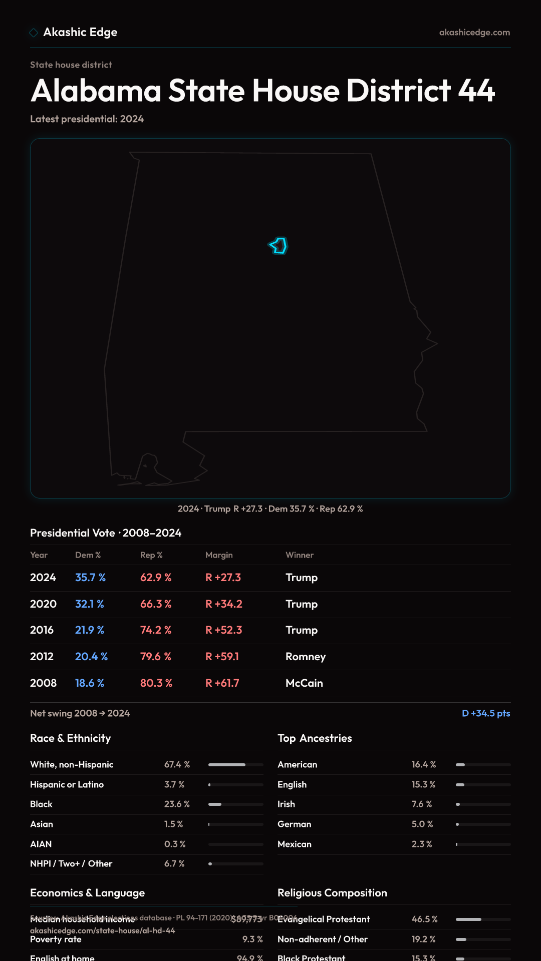 Who lives in Alabama State House District 44? 49,545 residents as of the 2020 Census.