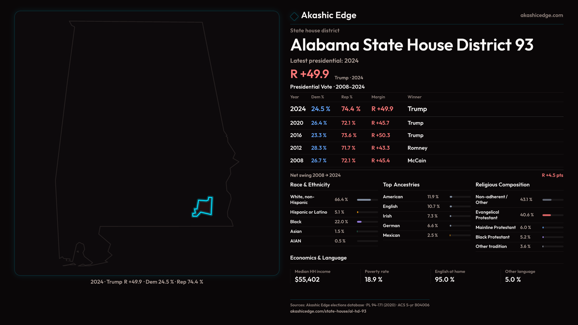 Who lives in Alabama State House District 93? 45,499 residents as of the 2020 Census.