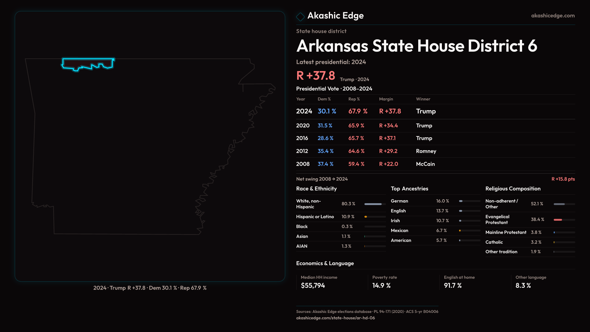 Read this geography's profile in three layers: local, state (where available), and national baseline.