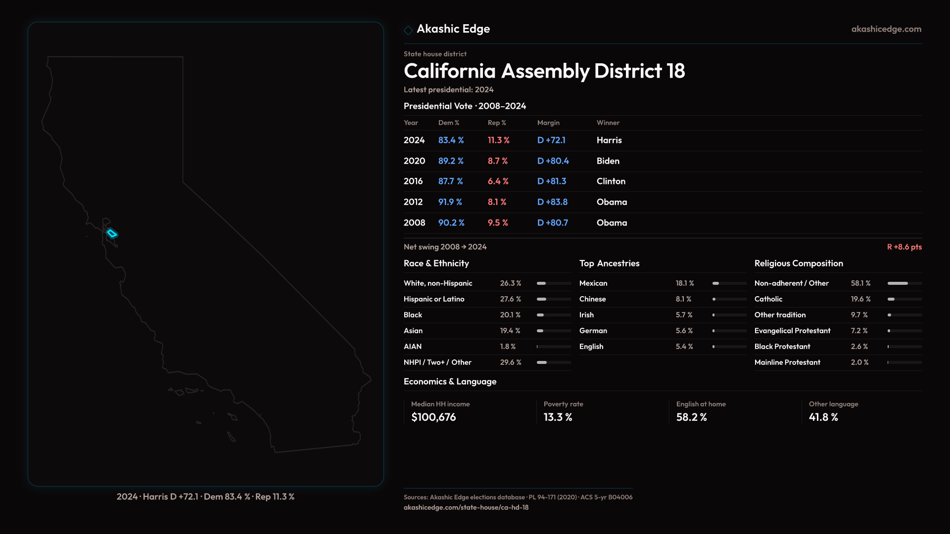 Who lives in California Assembly District 18? 483,963 residents as of the 2020 Census.